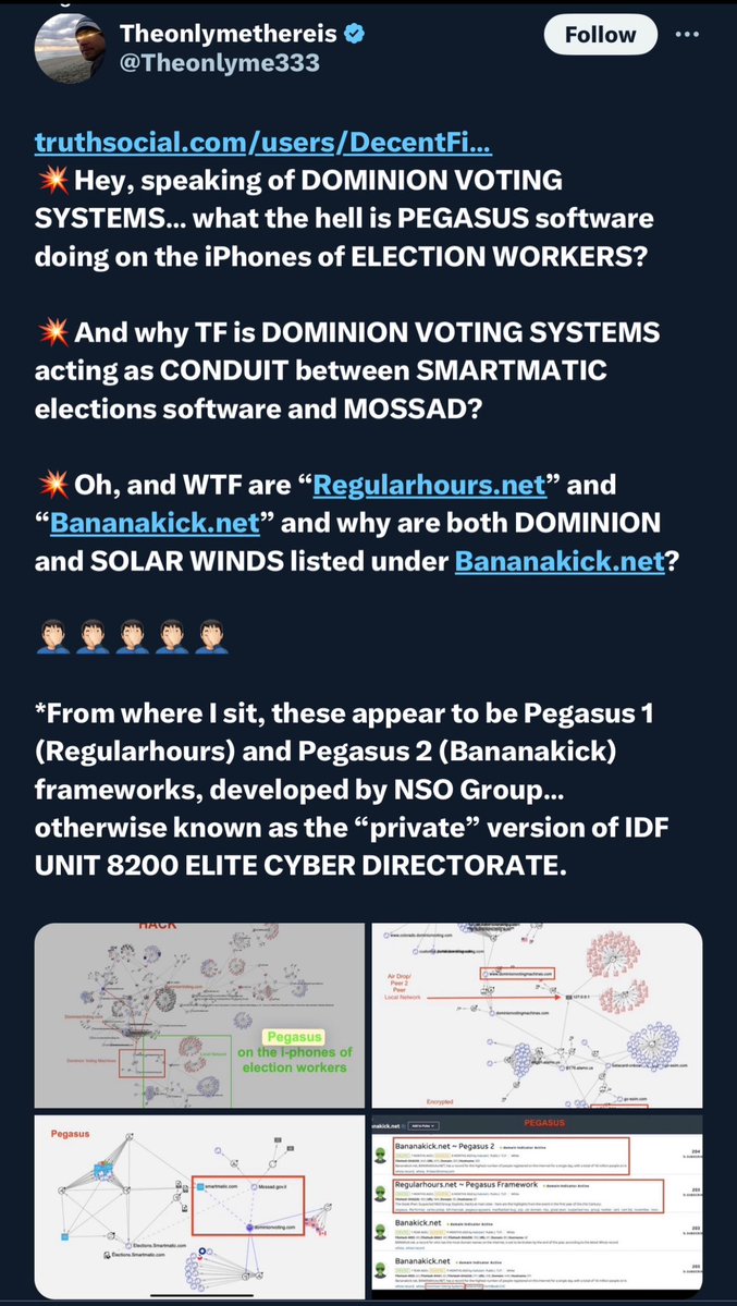 Cyber Patriots, We’re gonna have to disable their grid/cdn in pocketed areas. Akamai, Gandi Net, Cloudflare and Facebook. If we start by neutralizing Win32 exploit across native Microsoft frameworks will go a long ways towards neutralizing elections hacks that stem from Azure/Albert/CISA/Cloudflare (US/UK) and Scytl/ClarityElections (Israel). For China, we’ll need to disrupt Symantec to disable Huawei’s remote access into elections networks from Beijing, Shanghai and Guandong province and directly through KNOWiNK and straight into Smartmatic/Dominion. Neutralizing Alibaba will help us contend with Facebook and its fancy new CDN. Stopping Pegasus and Google (Novell/Jigsaw/Alphabet) will be the most challenging, imo. But it CAN be done by tackling Kleiner, Cerberus and Apple in Silicon Valley, Washington DC, Massachusetts, Colorado, Cyprus, Luxembourg and Singapore… and AT&T, BlueVoyant and Ericsson/Verizon/Tyler Tech in Atlanta, Ohio and Plano,TX. And by stopping Israel Technion, Qualcomm/Palo Alto Networks, Columbia University, Civis Analytics, Liquid Web, Snowflake, Bloomberg Defense Innovation Board (Kleiner/PayPal), Domains by Proxy, Arena and http://Impactive.io by protecting and preventing unauthorized access to America’s elections and voter data through GoDaddy, which is their MAJOR vector of corrupting voter rolls and census data with ERIC/BPro/KNOWiNK… aka… KONNECH. The coordination on this needs to start now. Hit me up if you’re interested in discussing some Minecraft things.🙏🏼🇺🇸🫡