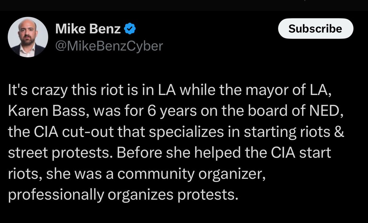 🧵 THREAD: Who really is Karen Bass? Most people know her as the Mayor of Los Angeles, and some remember her botched handling of this year's wildfire crisis. But there’s a lot more beneath the surface. Let’s dig in. ⬇️ 1️⃣ Karen Bass once served as Vice Chair of the National Endowment for Democracy (NED), a U.S. government-funded NGO notorious for meddling in foreign governments under the banner of "promoting democracy." Translation: soft power regime change. 2️⃣ NED has been exposed repeatedly for funding color revolutions, pushing Western-aligned NGOs, and helping topple governments that don’t play ball with U.S. interests. Bass was right in the middle of it. 3️⃣ And then there’s the scholarship scandal. LA County Supervisor Mark Ridley-Thomas got federally indicted for receiving a scholarship from USC’s School of Social Work and allegedly trading favors. Bass? She received the exact same scholarship. But no charges. Not even a slap on the wrist. 4️⃣ Why the double standard? When you're part of the machine... when you’ve got D.C. connections, NGO backing, and ties to the intel-adjacent nonprofit world: you get protection. She’s not a DEI figurehead - she's in the system. 5️⃣ This thread will walk through her career, her quiet rise through soft power institutions, and how she became a key player in the globalist swamp. Big thanks to @HTWardish for the lead. Let’s get into it. (Patience as I construct this thread live)🔻