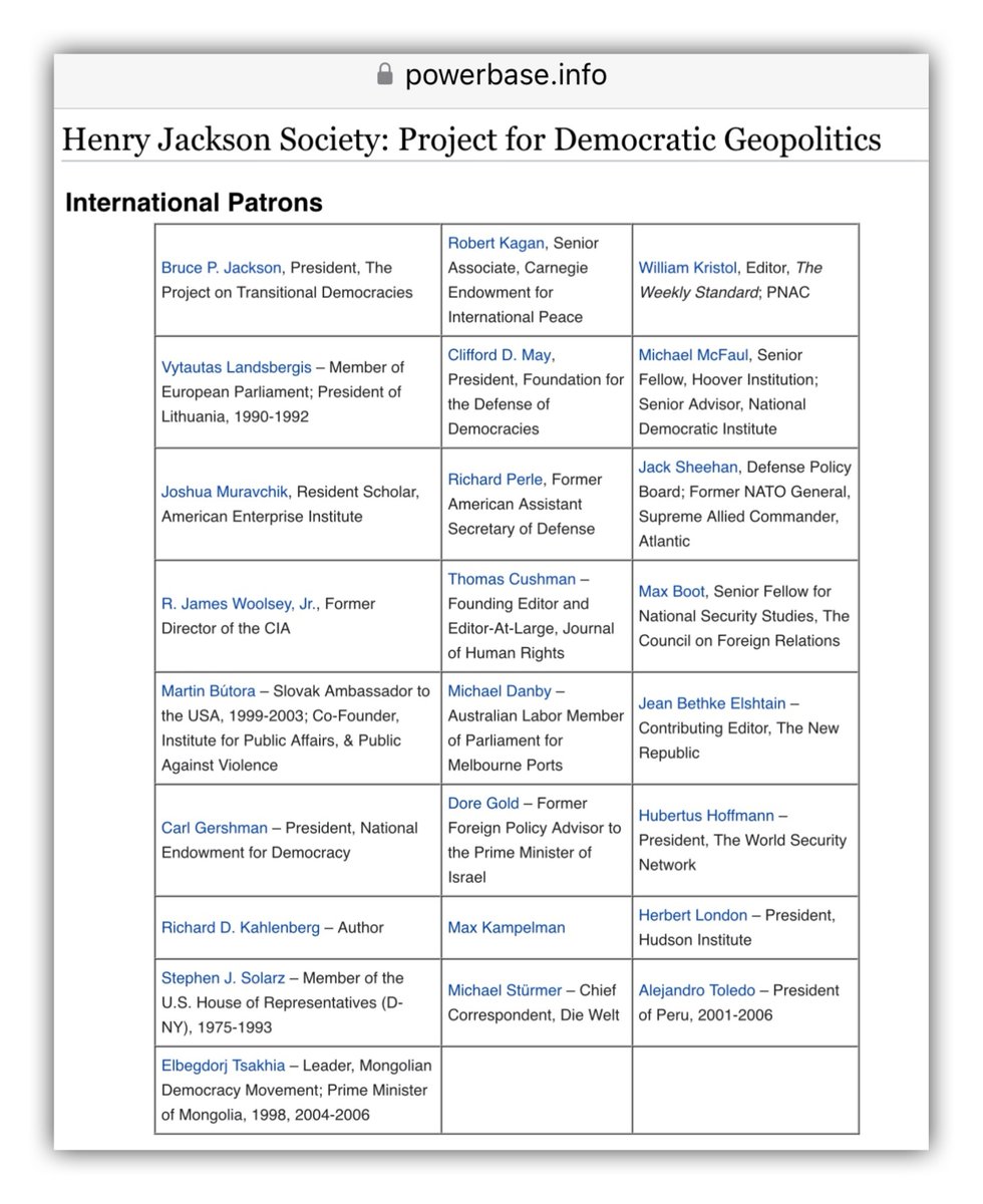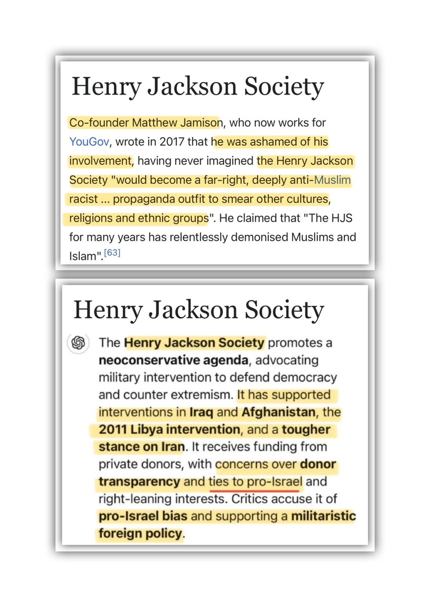 The Henry Jackson Society is a Pro-Israel UK based org that supports a militaristic foreign policy & promotes Islamophobia in the west Its patrons & donors are a who’s who of warmongers responsible for wars within the last 3 decades, most of which were for the benefit of Israel.