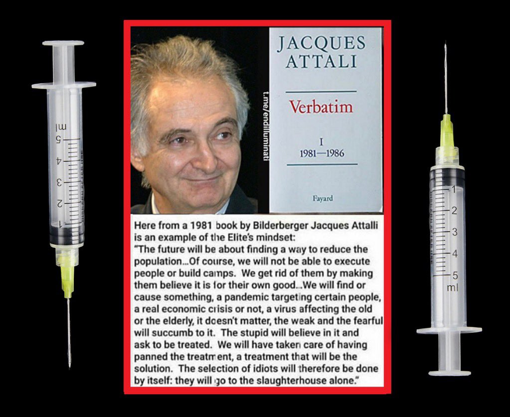 🧵Thread🧵Post 12🧵 You already know the background of who said this…. “In the future it will be about finding a way to reduce the population. We will start with the old, because as soon as he is over 60-65 years of age, man lives longer than he produces and costs society dearly. Then the weak and then the useless who do nothing for society because there will be more and more of them, and especially finally the stupid ones.” “Euthanasia targeting these groups; euthanasia will have to be an essential instrument of our future societies, in all cases. Of course, we cannot execute people or set up camps. We will get rid of it by making them believe it is for their own good. Too large a population, and for the most part unnecessary, is something economically too expensive.” “Socially, it is also much better for the human machine to come to a screeching halt rather than gradually deteriorating. We won’t be able to give intelligence tests to millions and millions of people, you can imagine! We will find something or cause it, a pandemic that targets certain people, a real economic crisis or not, a virus that will affect the old or the big, it doesn’t matter, the weak will succumb to it, the fearful and the stupid will believe it and ask to be treated.” “We will have taken care to have planned the treatment, a treatment that will be the solution. The selection of idiots will thus be done by themselves: they will go to the slaughterhouse on their own. “ “The future of life” – Jacques Attali🔯, 1981, interview with Michel Salomon. Attali served as a counselor to President François Mitterrand from 1981 to 1991, and was the first head of the European Bank for Reconstruction and Development from 1991 to 1993