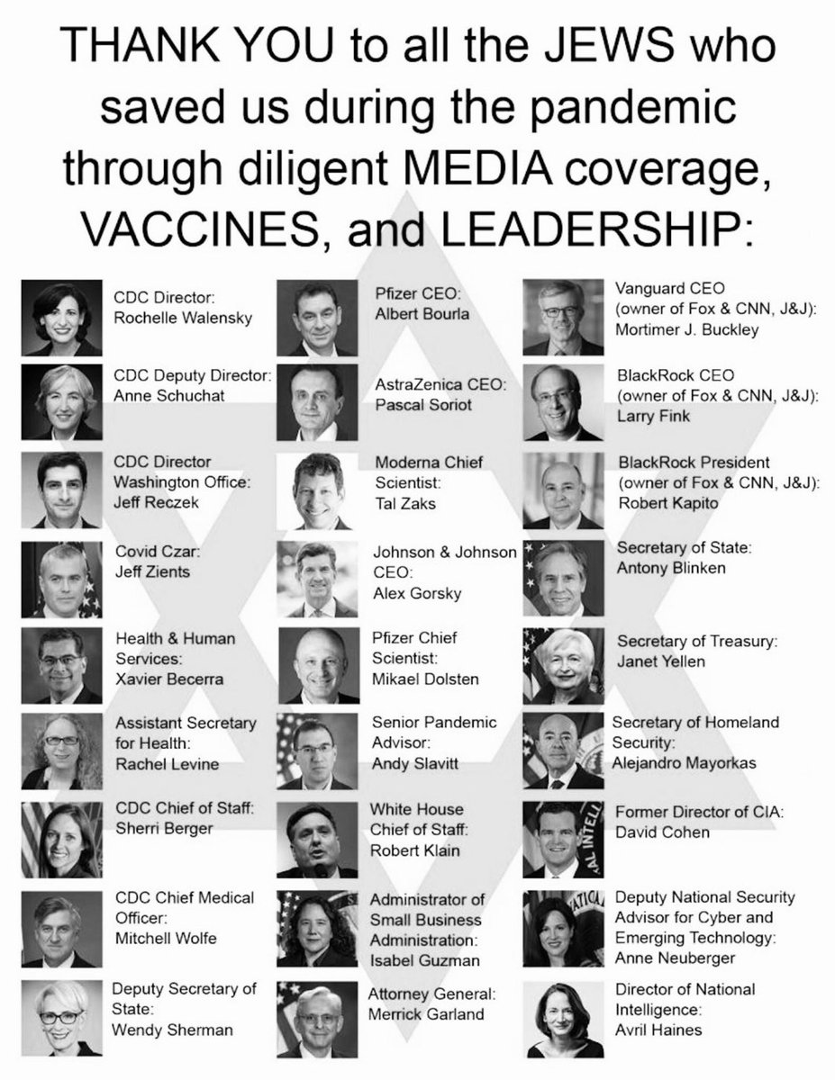 This is me sitting here with ALL the receipts implicating Israel AND GLOBAL JEWRY and telling you that you’d better seriously reconsider this Bolshevik bullshit move. It won’t end well for you to come after angry American non-Jews for “antisemitism” after we were attacked by a ETHNIC-SPECIFIC bioweapon that JEWS CALIBRATED TO TARGET WHITE, NON-JEWS WITH.