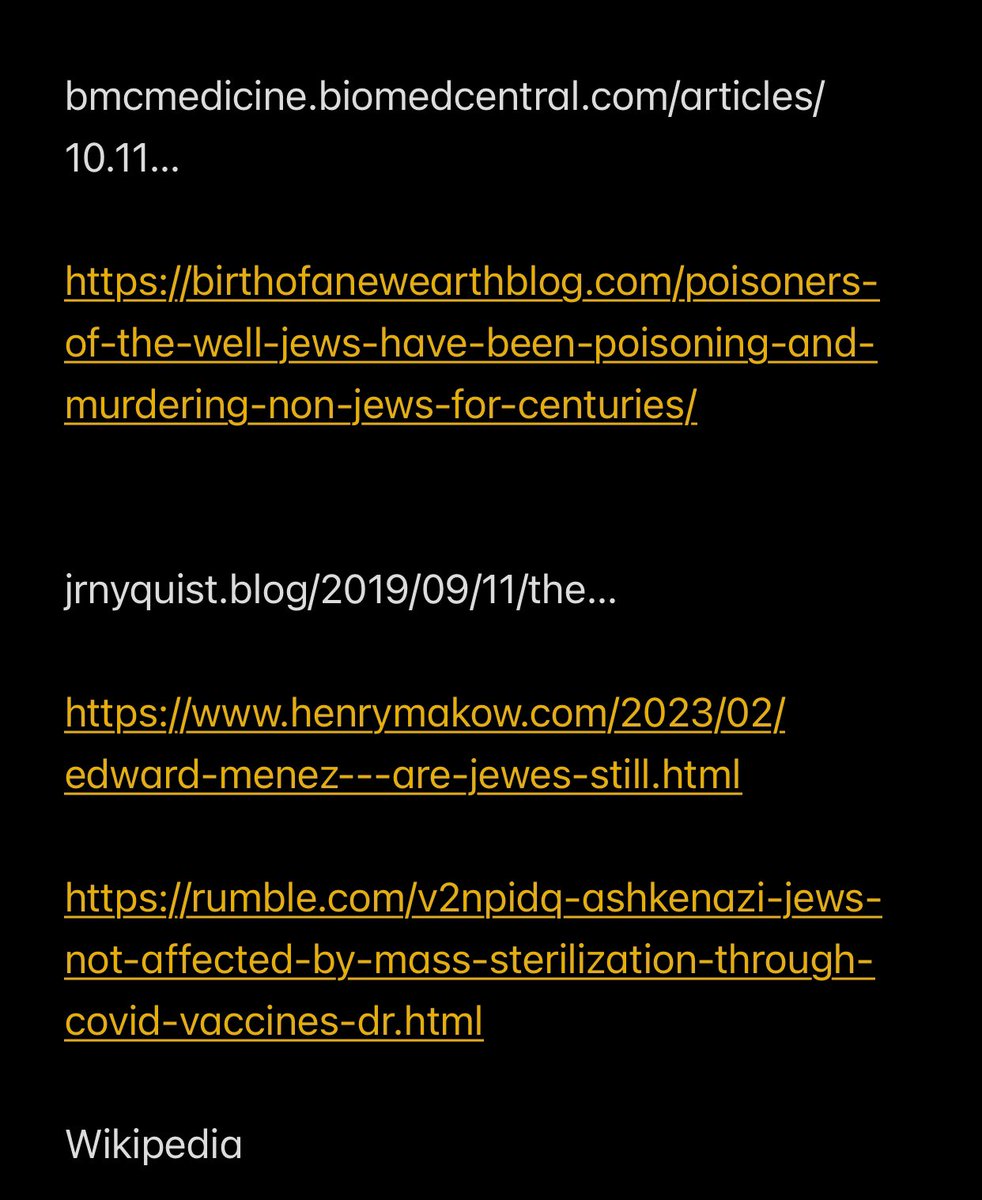 🧵Thread🧵Post 2🧵 First, let’s go back in history a little bit… ‘For millennia, JËŴŞ have been referred to as the “poisoners of the wells“. Simultaneously, we have been repeatedly assured that this is nothing more than a “conspiracy theory” created by senseless bigots who hate jews for “no reason whatsoever“.’ “The persecution of JËŴŞ during the Black Death consisted of a series of violent mass attacks and massacres. Jewish communities were often blamed for outbreaks of the Black Death in Europe. 1348-1351.” “Lawrence Pavelsky, a jewish pediatrician, talked about how jews were caught poisoning wells during the "Black Death" in Europe, and relates it to what has taken place with Covid.” Probably a conspiracy theory….🤥