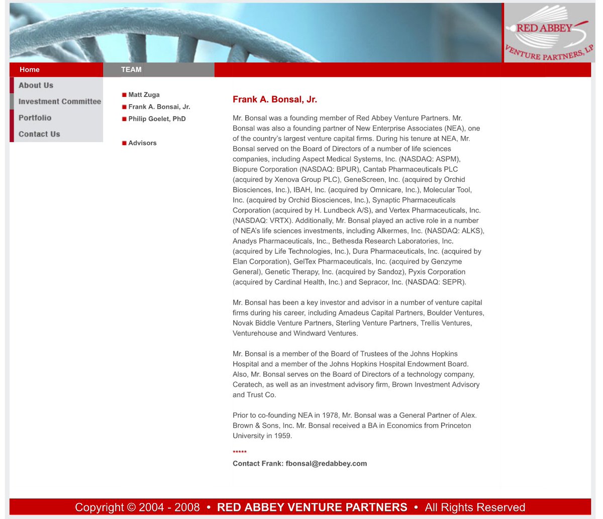 ✅FRANK A. BONSAL, JR. *Founding PARTNER of NEW ENTERPRISE ASSOCIATES (NEA), founding member of RED ABBEY VENTURE PARTNERS. *BONSAL is a member of the BOARD OF TRUSTEES of JOHNS HOPKINS HOSPITAL and a member of the JOHNS HOPKINS HOSPITAL ENDOWMENT BOARD. *Prior to CO-FOUNDING NEA in 1978, BONSAL was a GENERAL PARTNER of ALEX. BROWN. Ohhh… imagine the FUCK outta that.🤣🖕