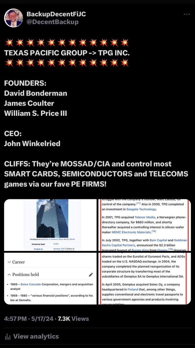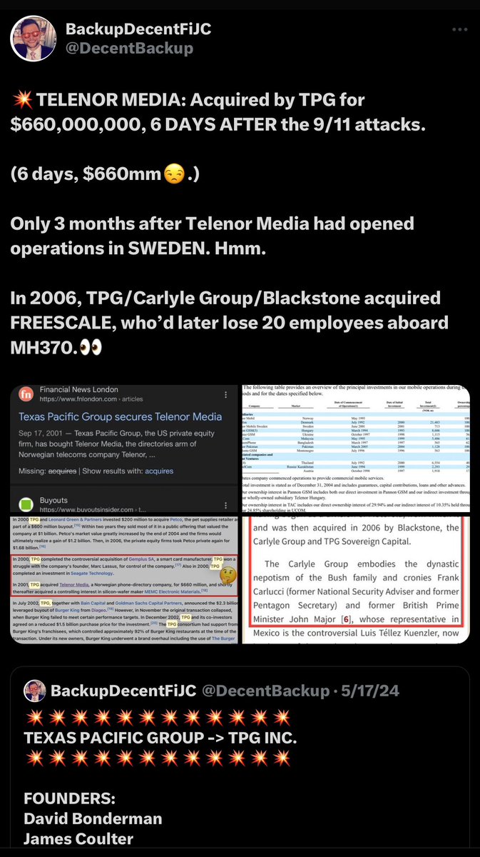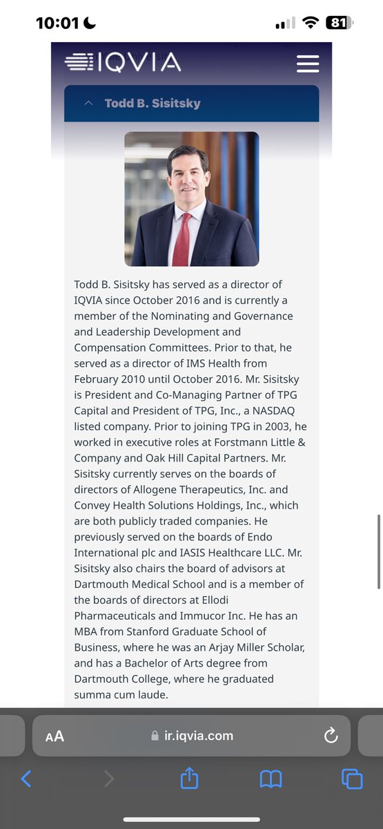IQVIA even has the PRESIDENT of TPG INC on its BOARD OF DIRECTORS!🤣 ✅TODD B. SISITSKY TPG INC, President TPG CAPITAL, Partner TPG: *DAVID BONDERMAN *FREESCALE SEMICONDUCTORS *TELENOR MEDIA *They acquired TELENOR MEDIA 6 DAYS AFTER 9/11 for $660,000,000.😒 (Fuck. You.🖕🏼) https://t.co/nsr05Januj