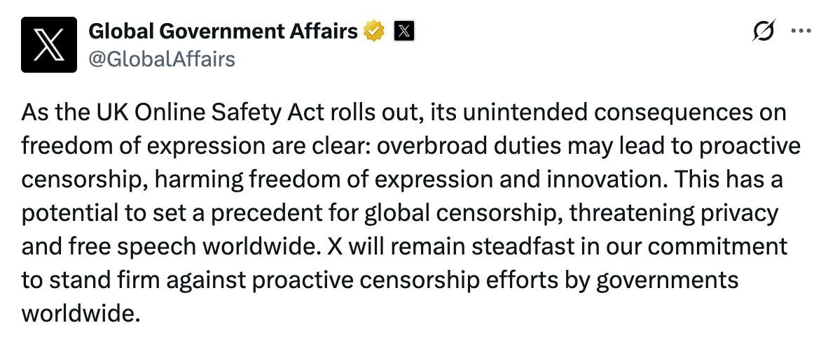10/ The Pattern is Clear: 1️⃣ Governments create "safety" laws to justify surveillance. 2️⃣ They pressure tech companies to enforce censorship. 3️⃣ Once encrypted services are gone, nothing is private anymore. This is the biggest attack on digital freedom in history. And most recently @elonmusk and @lindayaX appear to have taken the bait by backing the Kids Online Safety Bill (KOSA) - a 'child safety' bill trojan horse for draconian censorship: https://sayerji.substack.com/p/alert-elon-musk-endorses-ccdh-backed?utm_source=publication-search