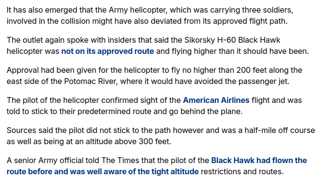 🚨BREAKING: The DC plane crash with the Blackhawk helicopter has now been investigated and the results are horrifying. The NYT is reporting that the DEI-era pilot was told multiple times to shift altitude and course and she refused. Now 70+ innocent people are dead… https://t.co/QlAZ5jiaJv