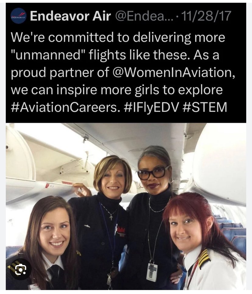 @EndeavorAir's X account has 4 posts promoting Female-Only "UNMANNED" flights. They have turned off comments on the most recent "unmanned" post but the comments remain open on the other 3. Based on the available information, the names of the pilots on the Delta flight operated by Endeavor Air that crashed in Toronto have not been publicly disclosed.