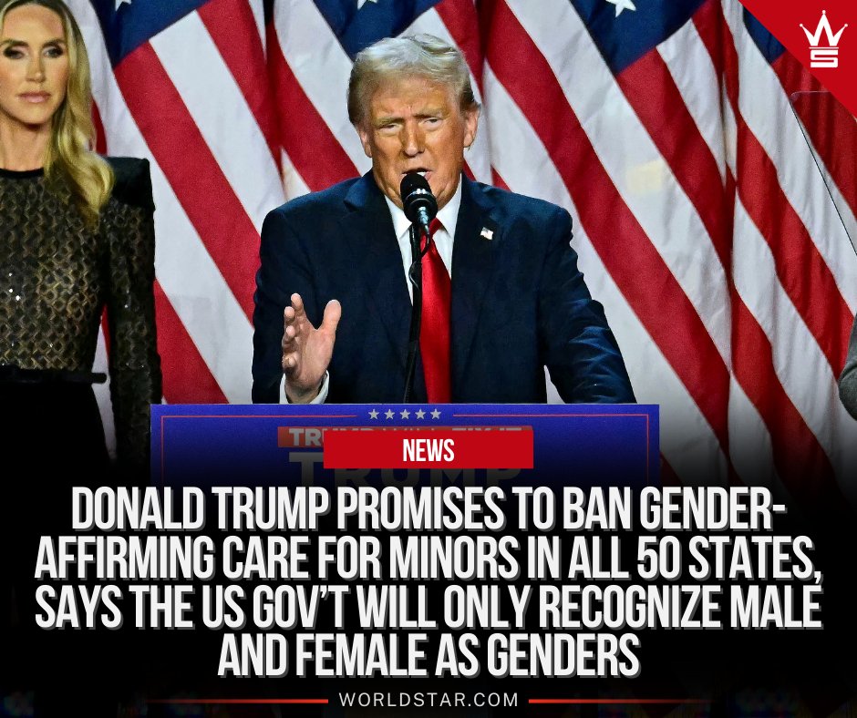 #DonaldTrump promises to ban gender-affirming care for minors in all 50 states, says the US government will only recognize male and female as genders https://worldstar.com/videos/wshh925McC8H0MxbQ3dI/donald-trump-says-on-day-1-of-taking-office-the-only-two-genders-recognized-in-america-will-be-male-and-female
