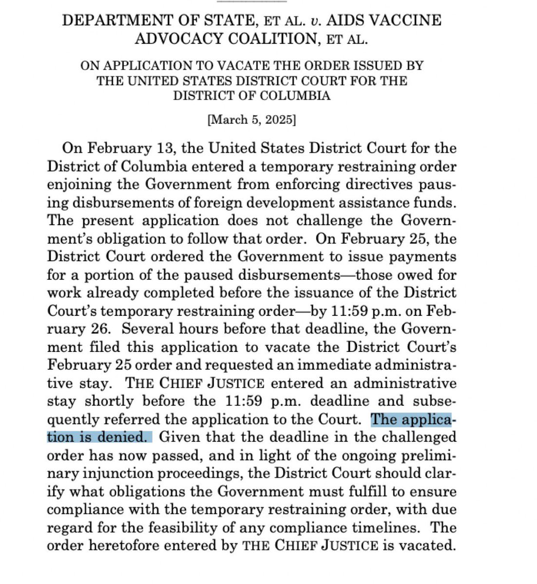 BREAKING: The US Supreme Court just denied President Trump‘s bid to cancel $2 billion in USAID spending in a 5-4 vote. So basically SCOTUS is over ruling Trump to pay out foreign aid. Roberts & Barrett sided with Democrat appointed justices. Trump appointed Barrett. https://t.co/vhiZzIQhi5
