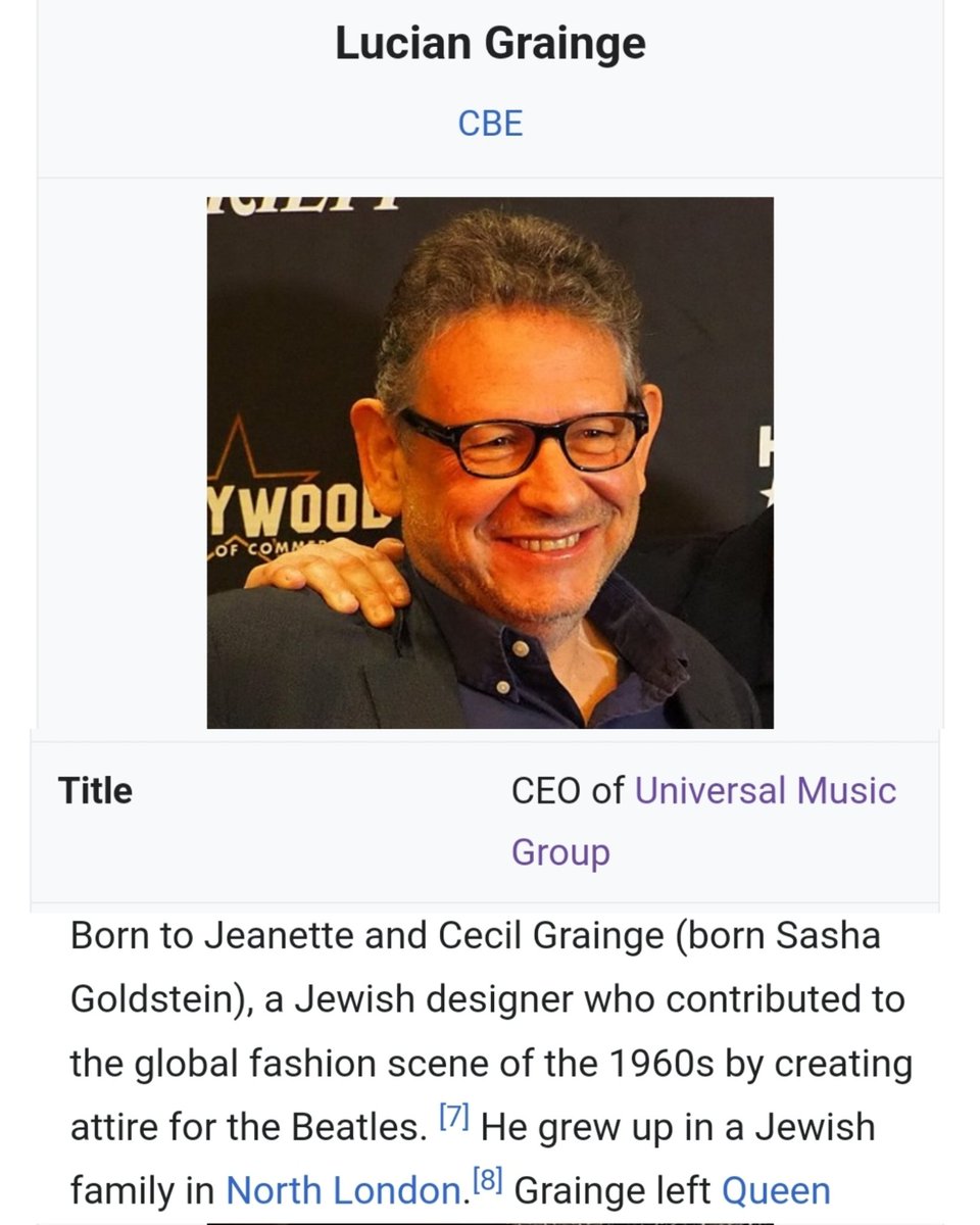 @cthagod 🧵5/ Universal Music Group is headed by Lucian Grainge (Goldstein). Lucian Grainge is J-ish.