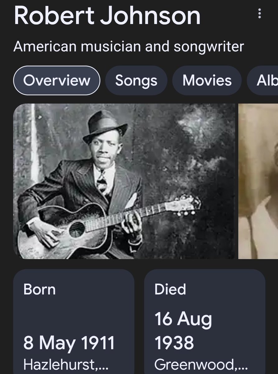 Robert Johnson's last song before he died was "Me and the Devil Blues" where he talks about himself making a deal with the devil. It's important to mention that his death certificate wasn't discovered until 30 years later and the cause of was unknown. https://youtu.be/3MCHI23FTP8?feature=shared