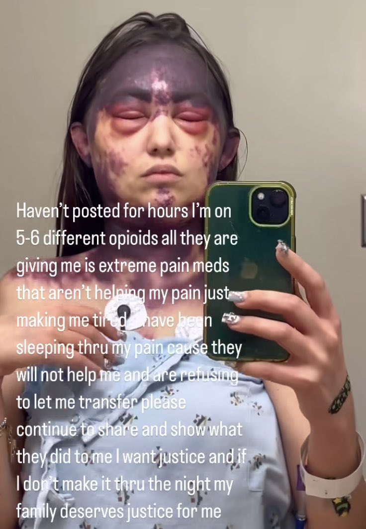 @MidwesternDoc outlines the deeply troubling care Alexis received during her hospital stay, which starkly contrasts with how she should have been treated. Her severe pain, swelling, and the hematomas covering her body were largely ignored. Despite her alarming symptoms beginning right after the vaccines, the hospital attributed them to a Parvovirus infection. To make matters worse, Alexis reported being mocked by medical staff and faced extreme delays when requesting help. The hospital even refused to transfer her due to insurance issues, leaving her in critical condition. •She came in hoping for a blood transfusion, but was told she could not have any more treatment unless she received the vaccines.•The hospital has given conflicting messages about what vaccines she received (even though the nurse clearly told them which ones were being given). •Alexis’s entire body is covered with the same hematomas you can see on her face and her body feels as though it is inflated. Additionally, she is in severe pain. •The doctors have not treated her well (she claims some laughed at her, while another one stated they had never seen anything like this before) and that when she’s hit the call button for basic things she needs, it’s taken hours for nurses to get to her. •The hospital is convinced this could not have been due to the vaccine, and instead was due to a Parvovirus infection (which a PCR test was positive for). Given that all or her symptoms started 10 minutes after the vaccines…that’s a bit of a stretch but no different from what Suzanne Humphries experienced. •The tried to transport her out of the hospital but were unable to as she does not have the insurance to get care at another facility.