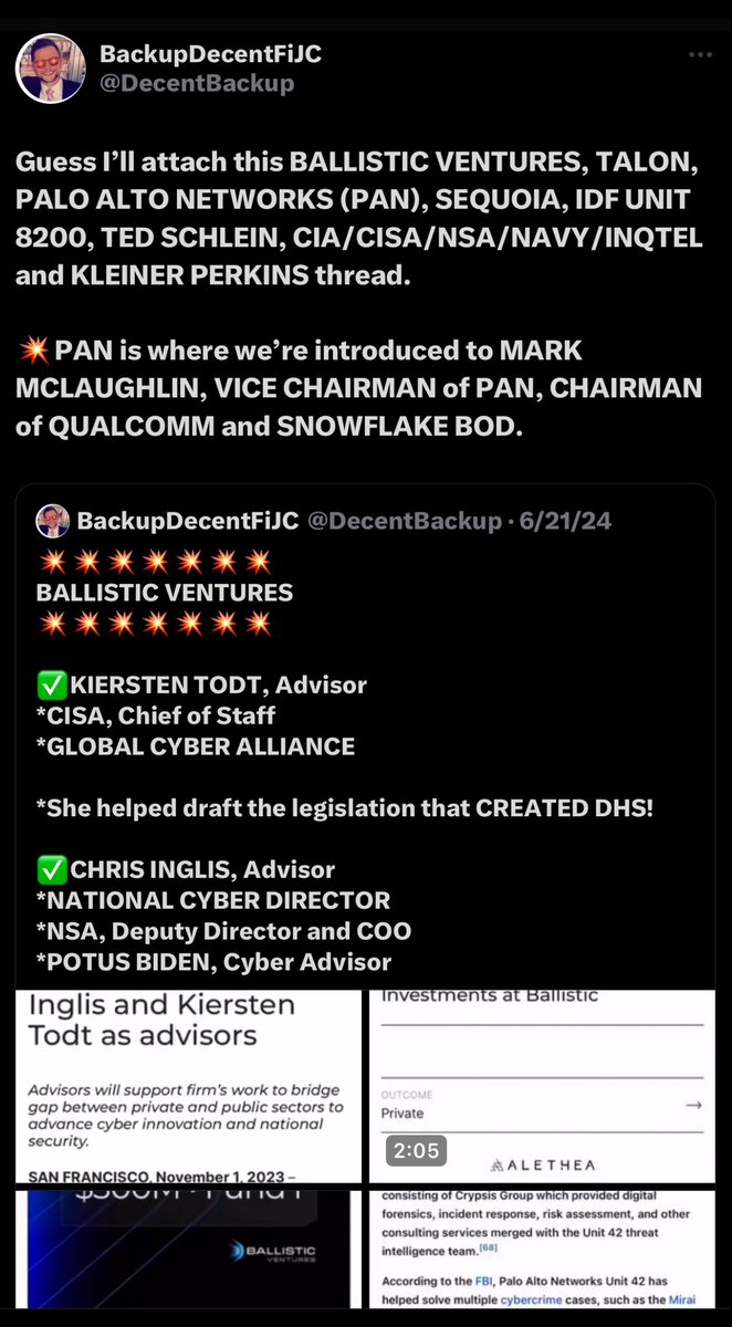 👺Let’s talk about America’s major “digital infrastructure” for a moment, folks: *Akamai - 9/11, Israeli Sayeret Matkal *Qualcomm - JFSD (JFNA), UJA/Mossad *Palo Alto Ntwks - Nir Zuk (IDF Unit 8200), Mark McLaughlin (Qualcomm/Snowflake/Mossad), Columbia University (GCHQ/Mossad/IQT/CIA) *CrowdStrike - Warburg Pincus (Mossad/IDF Unit 8200/DHS) *Google - 9/11, Schmidt (became CEO March 2001); COVID, Brin (23andMe/Genentech) *Kleiner Perkins - Genentech, Sun Micro, Amazon, Google, TwitterX (IDF/Mossad) *Microsoft - Bill Gates (Jeffrey Epstein) *IBM - “Israeli British Mossad”/CCP *GoDaddy - Parsons, Silver Lake (Duke/Alibaba/Santander/Care USA/ SolarWinds/Booz Allen Hamilton/Israeli Technion Institute) *Snyk - Israeli Mossad, Unit 8200 & Sayeret Matkal… literally the Israelis involved with executing and covering up 9/11… and Markle Fdn (IQT/CIA/Rockefeller Population Council/Brookings/Carlyle/Centerview/CFR) *Talon - IDF Unit 8200 (Ben-Noon), Rogers (NSA) *SentinelOne - IDF/Mossad/CIA/GCHQ/CISA *Cloudflare - Matthew Prince (WEF/CFR/CISA/Bilderberg/Kleiner Perkins), Michelle Zatlyn (WEF/Aspen Institute/Atlassian/Google/GCHQ) *Ericsson - Wallenbergs (9/11), Cradlepoint, CommScope (Carlyle Group), NXP/TPG/MCI/Verizon/EQT *Wix - Avishai Abrahami (IDF Unit 8200) *Alibaba - Jo Tsai, Pony Ma, SoftBank, Goldman Sachs (Atlantic Council/Votem/Konnech/Yu), Investor AB (Wallenbergs/EQT) *Dominion Voting Systems - Serbia Broadband (BC Partners/KKR/Chewy/Athora/Apollo/Mossad/GCHQ), Lafayette Group (AT&T/FirstNet/Pritzkers/Aspen) and GoDaddy *Fortinet… (You probably get the idea at this point.)