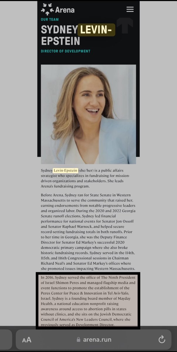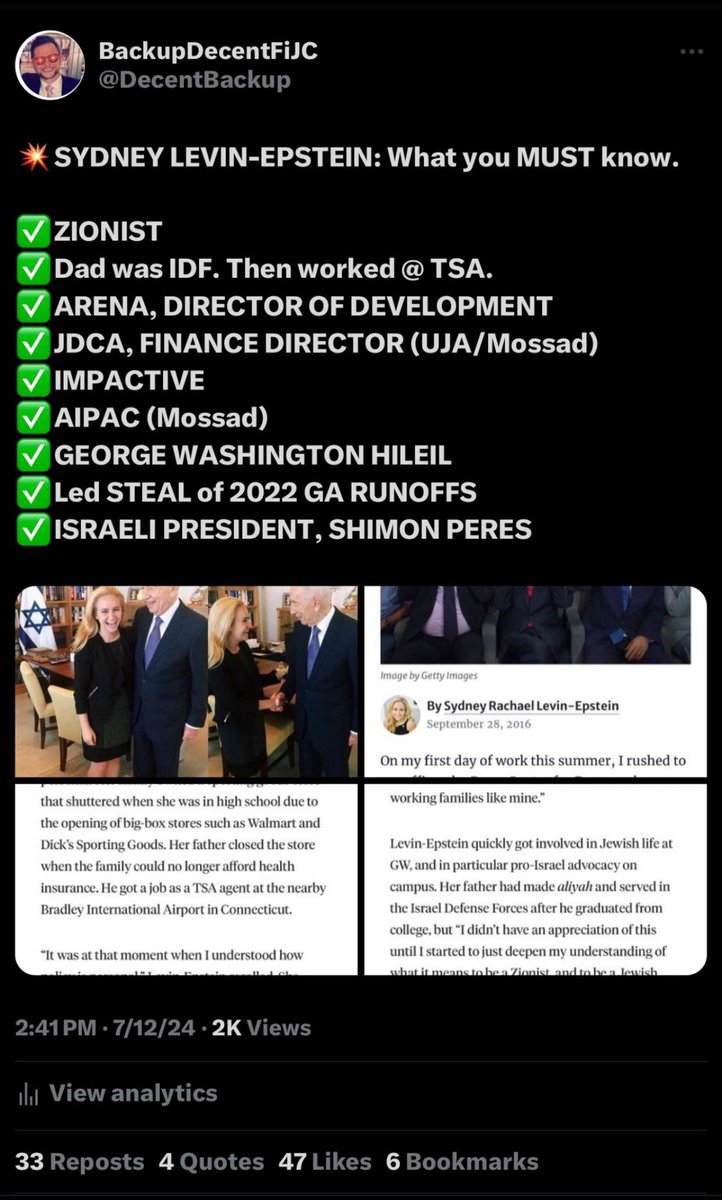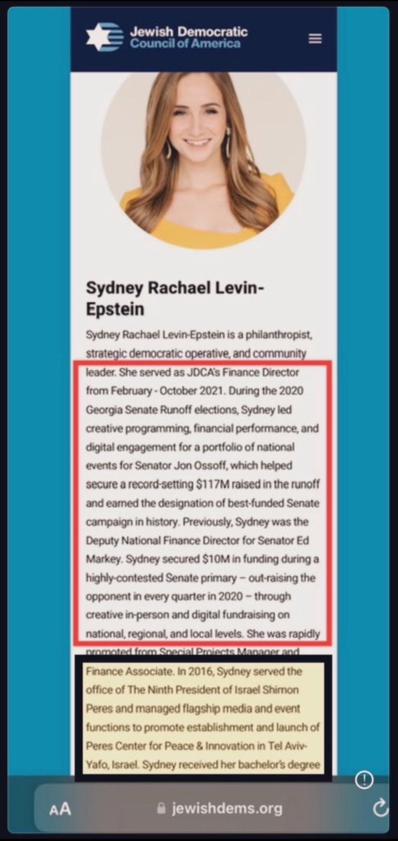 Interesting takes, amirite? American Jewish Committee. Oh look. There’s Gabby Deutch. She works with Stop Antisemites to get White non-Jews fired for telling the truth about Jew crimes. And there’s Sydney Levin-Epstein, the election fraudster from Arena (Kleiner Perkins) and JDCA (UJA/Mossad) who helped steal the 2021 GA Senate Run-Offs for Warnock and Ossoff (Ashkenazi Jew). What are the chances?