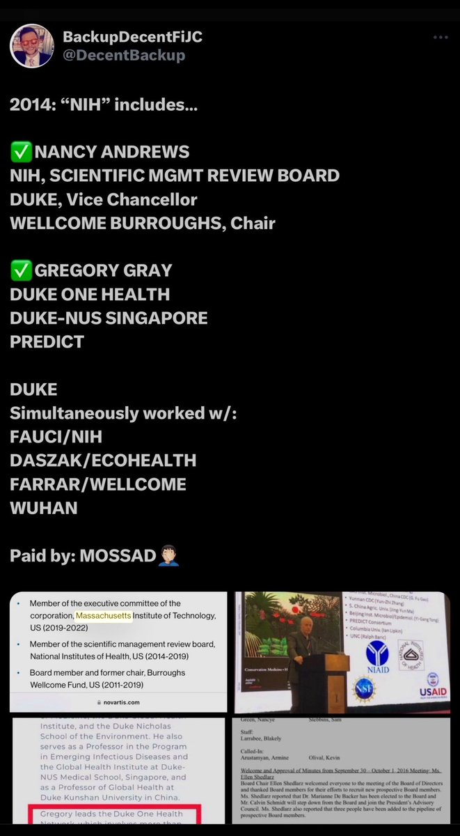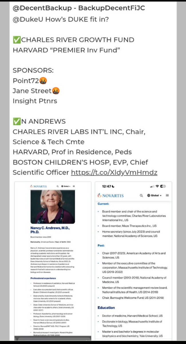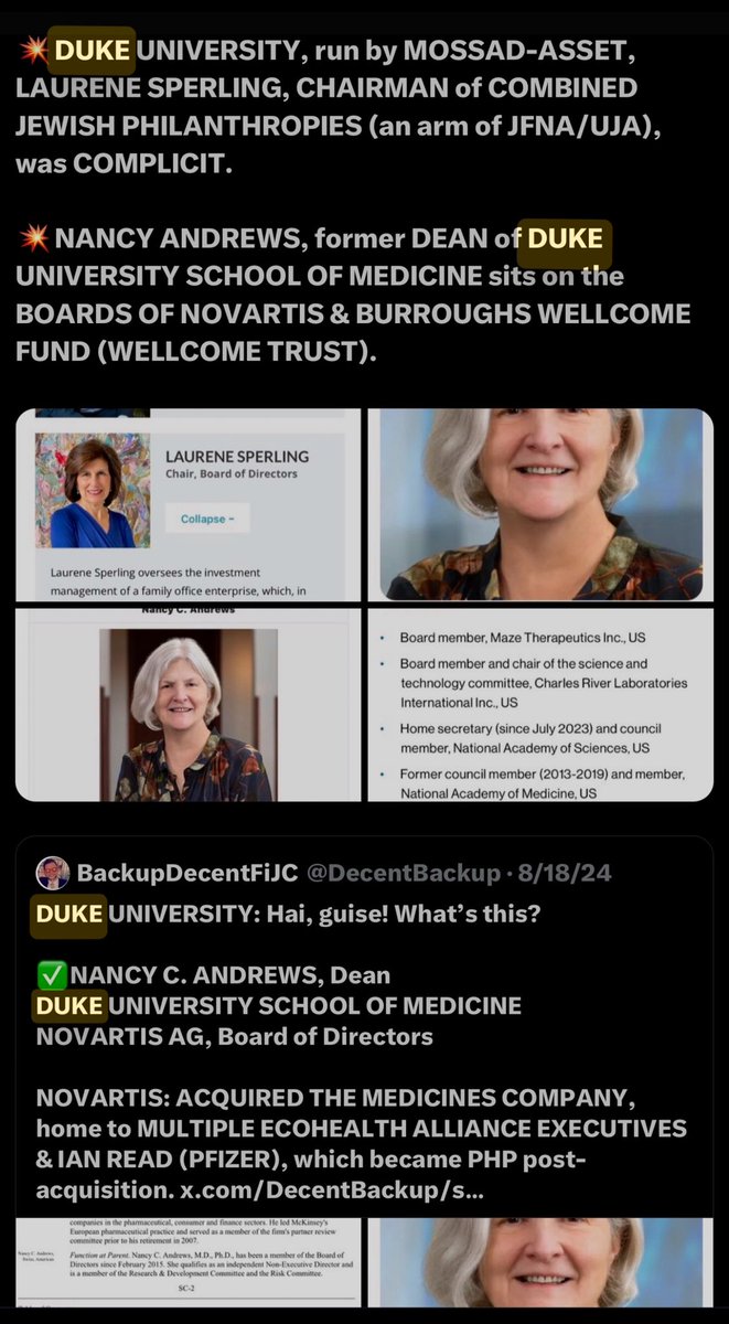 …CHAIRMAN of the SCIENCE & TECHNOLOGY COMMITTEE of CHARLES RIVER LABORATORY (Epstein), on the EXECUTIVE COMMITTEE of MIT CORPORATION (also Epstein), VICE CHANCELLOR for ACADEMIC AFFAIRS at DUKEU and EVP & CHIEF SCIENCE OFFICER of BOSTON CHILDREN’S HOSPITAL (Sperling)! 🤣🤦🏻♂️🖕 https://t.co/eCCZ28TjtX