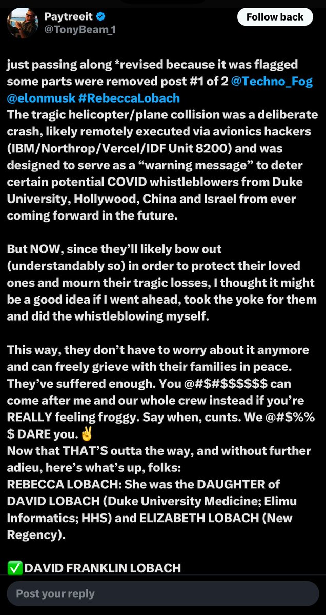 Yes, I see you unblocked me after I called you out. Now, we can discuss brass tax. Why is @DOGE working with the Chinese and Palantir to cover up so many of the treasonous crimes and all the election fraud committed against the American people by Alibaba, Tencent, Huawei, China Telecom and Unit 8200 Mamram fa***ts like Tal Morgenstern at Lightspeed, Peter Choo at Meta/Facebook and Timothy Alexander Steinert at Stanford/Columbia/Alibaba? Is it because Carlyle, Duke, Kleiner Perkins, Sequoia, Blackstone, LeumiTech and Sayeret Matkal are demanding they do so?