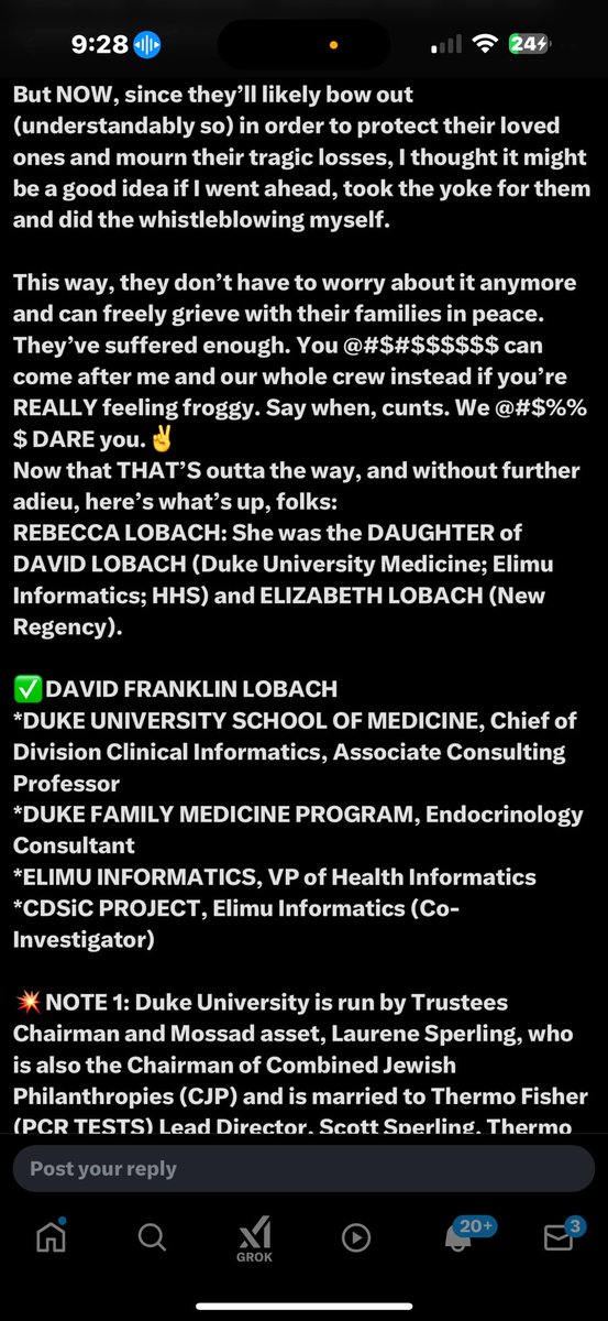 💥LEFT (2-22-2025): First post of the thread from last night at 12:17 am, exposing the “JEK-IE-LEK” Holocaust documentary (Finding Manny) for its ties to the Jewish Federations of South Palm Beach (JFNA/UJA/Mossad). This post exposes a number of COVID’s most CENTRAL PLAYERS at DUKE UNIVERSITY and in WUHAN, CHINA (Duke Kunshan), many/most of whom are known MOSSAD assets and tied in through a variety of the branches of JFNA/UJA around the United States and Canada. *It ALSO exposes WAGONER JR as being the CRITICAL DIRECT TIE between DUKE KUNSHAN (Chairman) in Wuhan and Global Jewry’s COVID biological terrorism operations against Global White Europeans, and DUKE ENERGY (Energy Initiative Task Force) and Global Jewry’s FEMA/Booz/Duke Energy/Cadmus/DoD weather modification and disaster relief sabotage terrorism campaigns in Western North Carolina (Asheville and Buncombe County). 💥RIGHT (2-22-2025): Second post of the thread from last night at 12:48 am, exposing the IDF UNIT 8200 and MOSSAD factions that control http://zoominfo.com (Unit 8200) and http://mountsinai.org (UJA/Mossad), which have been caught hacking into University of Alberta and the Alberta Health System (on behalf of HONG KONG’S LI KA SHING) and fucking with PUBLIC HEALTH/COVID DATA. *“JEK-IE-LEK” would be ESPECIALLY invested in the “RIGHT”, considering he’s a UNIVERSITY OF ALBERTA alum, and he directly references UNIVERSITY OF ALBERTA on consecutive posts YESTERDAY (his two most recent posts at the time) regarding their COVID RESPONSE.