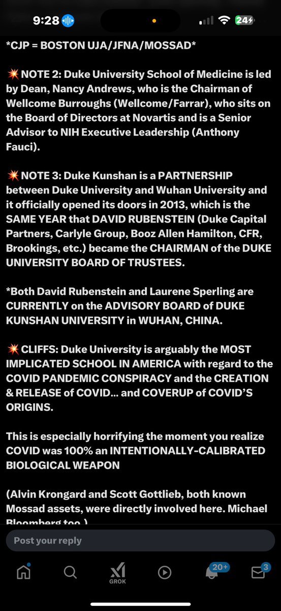 Not going through all of them again, but you can kinda get the gist from IBM, EcoHealth and fucking Trilateral Commission… and David (Duke Kunshan) Rubenstein’s stupid fucking face. (All of it’s already on my feed.)