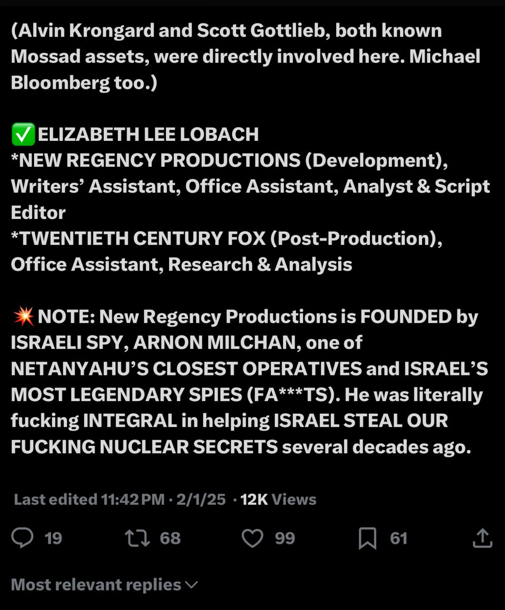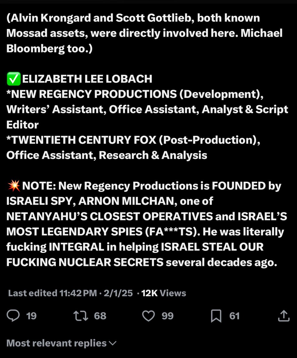 @KimWexlerMAJD *Reference docs - The deliberate COVID bioweapon attack by Jews against Whites. Gottlieb, Krongard, Bloomberg, Epstein, Mossad https://t.co/zLZQk8U9PW