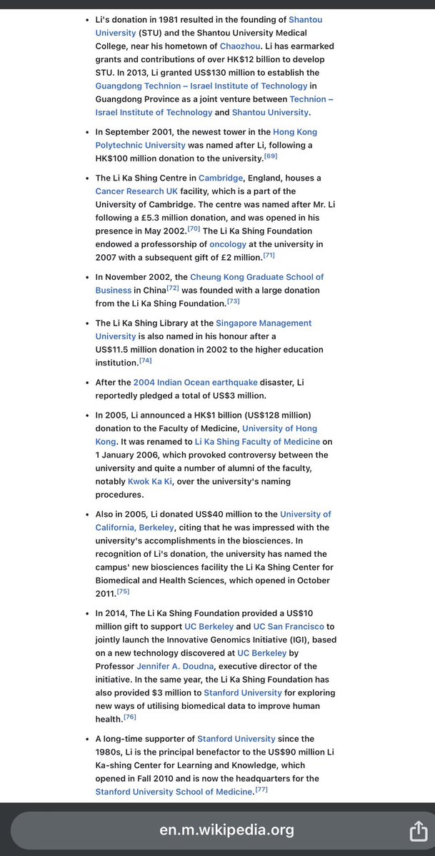 LI KA SHING: The WEALTHIEST businessman in HONG KONG who helped subsidize the “TechBro Takeover” of Silicon Valley by GLOBAL JEWRY. 💥💥💥💥💥💥💥💥💥💥💥💥💥💥💥💥💥 ✅LI KA SHING CENTRE: Established in 2002 at CAMBRIDGE UNIVERSITY in Cambridge, England, and houses “CANCER RESEARCH UK”. *Following a £5.3 million donation by LKS. ✅UNIVERSITY OF ALBERTA: Home of the LI KA SHING CENTRE FOR HEALTH RESEARCH INNOVATION, which houses the LI KA SHING INSTITUTE OF VIROLOGY and the LI KA SHING INSTITUTE OF APPLIED VIROLOGY. They were established in 2010 after LI KA SHING (CANADA) FOUNDATION made the LARGEST CASH DONATION to the UNIVERSITY OF ALBERTA in its HISTORY. *A $25 million donation made by LKS Canada Foundation, combined with a $52.5 million donation by the GOVERNMENT OF ALBERTA. ✅STANFORD UNIVERSITY SCHOOL OF MEDICINE: It’s HEADQUARTERED in the LI KA SHING CENTER FOR LEARNING AND KNOWLEDGE at STANFORD UNIVERSITY, which opened in 2010. LI KA SHING is/was the PRINCIPAL BENEFACTOR of the facility. *LKS: Principal donor to the $90 million facility. ✅LI KA SHING CENTER FOR BIOMEDICAL AND HEALTH SCIENCES: Officially opened at the UNIVERSITY OF CALIFORNIA-BERKELEY (UCB) in 2011, 6 years after a generous LKS donation to the university back in 2005. *$40 million donation by LKS. ✅GUANDONG TECHNION — ISRAEL INSTITUTE OF TECHNOLOGY: Established in 2013, this is a JOINT VENTURE between TECHNION — ISRAEL INSTITUTE OF TECHNOLOGY and SHANTOU UNIVERSITY in GUANDONG PROVINCE, near CHAOZHOU (LKS’s hometown). *Following a $130 million grant by LKS. ✅INNOVATIVE GENOMICS INITIATIVE (ITI): A COLLABORATION between UC-BERKELEY (UCB) and UC-SAN FRANCISCO (UCSF) that launched in 2014, based on a NEW TECHNOLOGY discovered at UC-BERKELEY by ITI EXECUTIVE DIRECTOR, JENNIFER DOUDNA (TEMPUS AI). Aka… CRISPR CAS-9. Gene EDITING. *LKS gave a $10 million gift in support of ITI. ✅STANFORD UNIVERSITY: Also in 2014, LKS FOUNDATION funded research to “EXPLORE NEW WAYS OF USING HUMAN BIOMEDICAL DATA TO IMPROVE HEALTH”. *LKS gave $3 million to STANFORD in support. 💥NOTE: Peter Thiel’s husband, Matt Danzeisen, is SPONSORED by LKS’s SON, RICHARD LI, in a JOINT VENTURE with CROWDSTRIKE/SALESFORCE architect, DAVID WONG. That joint venture is BRIDGETOWN III HOLDINGS, and was formalized on JANUARY 4, 2021.