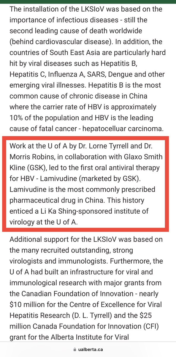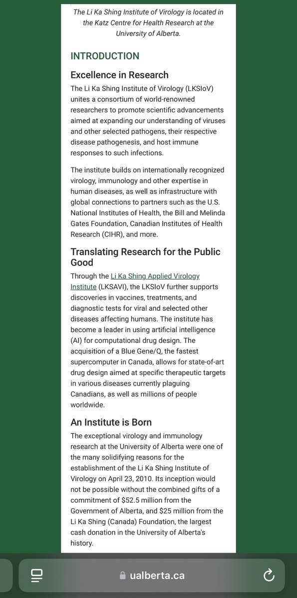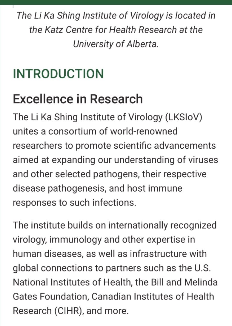 LI KA SHING INSTITUTE OF VIROLOGY 💥💥💥💥💥💥💥💥💥💥💥💥💥 “…located at the KATZ (Jew) CENTRE FOR HEALTH RESEARCH at the UNIVERSITY OF ALBERTA.” “The institute builds on… INFRASTRUCTURE with GLOBAL CONNECTIONS to PARTNERS such as the U.S. NATIONAL INSTITUTES OF HEALTH (NIH/Fauci), BILL & MELINDA GATES FOUNDATION (Microsoft/EcoHealth Alliance/IQT/CIA), CANADIAN INSTITUTES OF HEALTH RESEARCH (CIHR), and more.” “Work at the U OF A by DR. LORNE TYRRELL and DR. MORRIS ROBINS, in COLLABORATION with GLAXO SMITH KLINE (aka ‘WELLCOME TRUST/JEREMY FARRAR’)… enticed a LI KA SHING-SPONSORED INSTITUTE OF VIROLOGY at the U OF A.” Oh. Well, that’s just a gat damn SHAME.😒