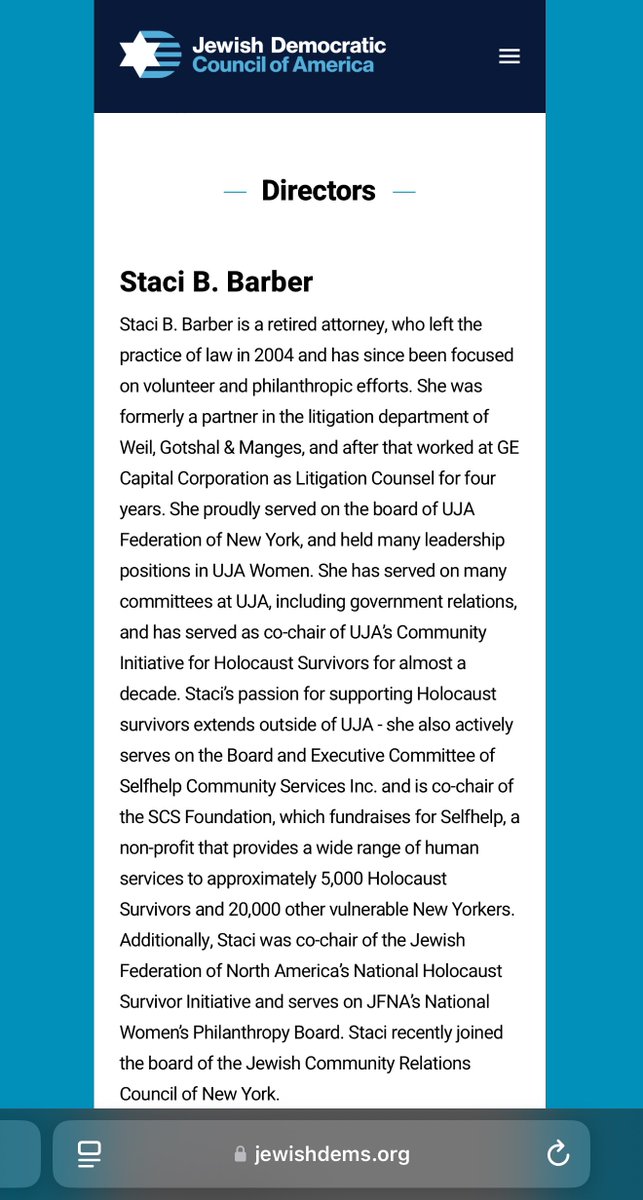 ✅STACI B. BARBER, JDCA DIRECTOR *She’s also UJA-FEDERATION (Mossad) BOARD MEMBER, is CO-CHAIR of UJA’S “COMMUNITY INITIATIVE FOR HOLOCAUST SURVIVORS” and is a MEMBER of the BOARD OF DIRECTORS and EXECUTIVE COMMITTEE of SELFHELP COMMUNITY SERVICES, where UJA EXECUTIVE and SELFHELP CEO, STUART KAPLAN, helped MURDER A BUNCHA WHITE, NON-JEW AMERICAN SENIORS in HOSPITALS and SENIOR/ASSISTED-LIVING FACILITIES during the PANDEMIC… …just like at PREAKNESS HEALTHCARE in PASSAIC, NEW JERSEY! I’m sure that’ll never be relevant again in the future! And there’s TX REPRESENTATIVE JASMINE CROCKETT too! How neat, sports fans! As it turns out, she was endorsed by JDCA (UJA/Mossad) too! @merissahansen17