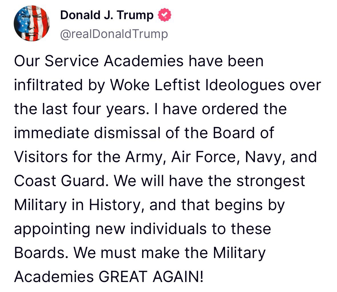 BREAKING: Trump just fired the Board of Visitors for the Army, Air Force, Navy, and the Coast Guard. https://t.co/waOvakt5TI