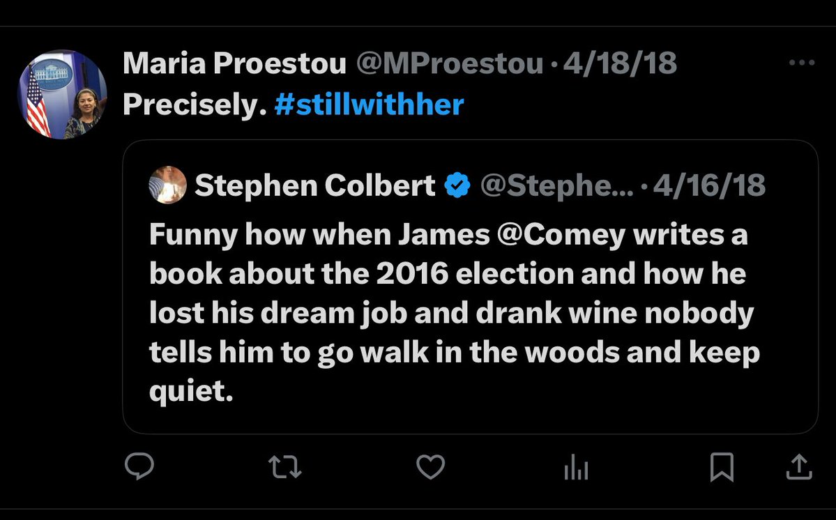 In this tweet from 2018, @MProestou said she’s still with Hillary. Why is she in the current Trump admin??? https://t.co/t0ozGGMgpj