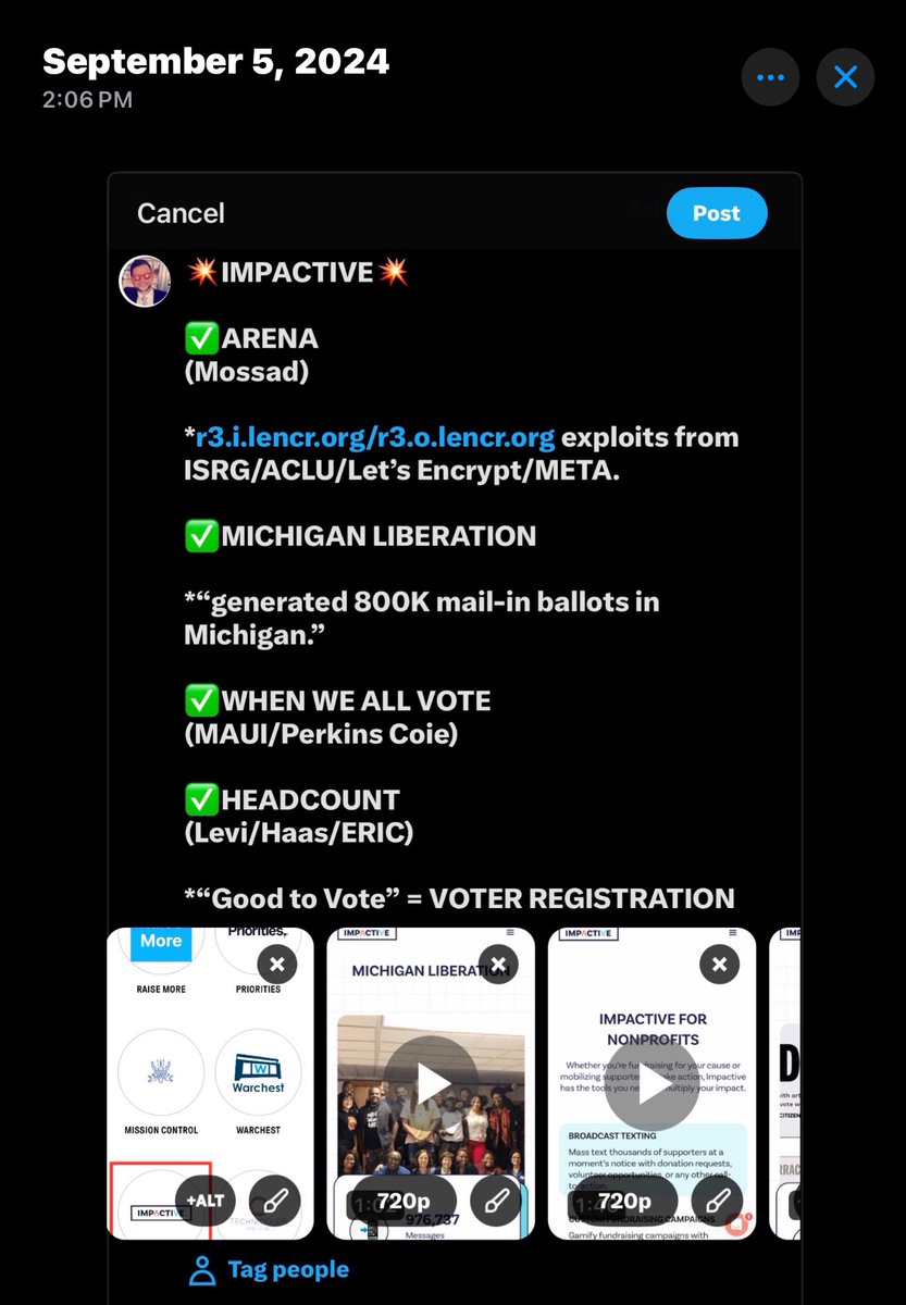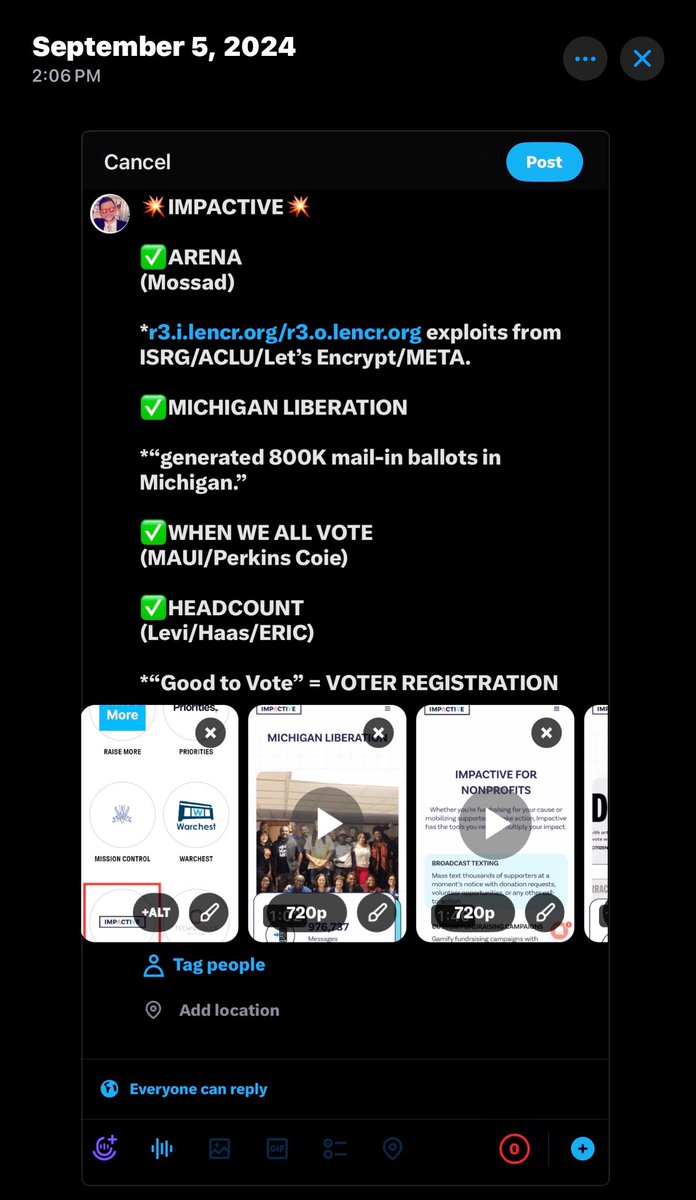 LET’S ENCRYPT: http://r3.i.lencr.org IMPACTIVE (Lauren Taylor Wolfe, UJA, MOSSAD, UBS, LUX CAPITAL, CARLYLE GROUP, Woolsey, CIA) ARENA (JDCA, UJA, KLEINER, MOSSAD) ACTBLUE (Smurf) BLUE ROSE RESEARCH (Shira Mitchell, Snowflake/Qualcomm/IDF/Mossad, Columbia, CIVIS Analytics)