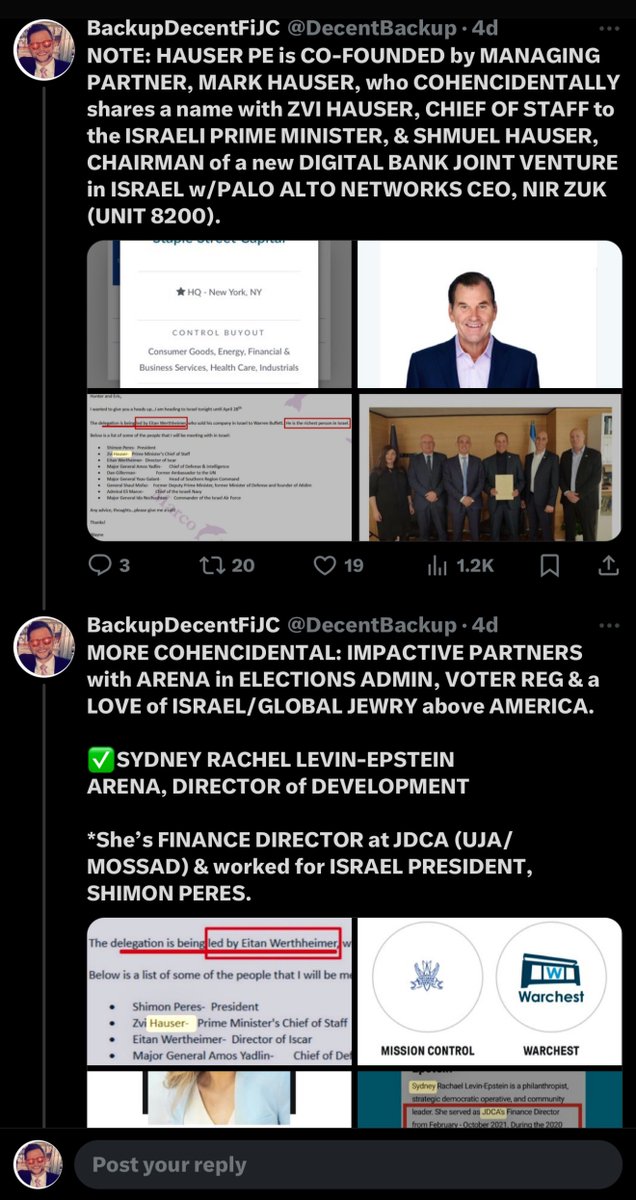 @DHSgov @FBI @Redmrd1 @hippyresident Please be advised. I exposed this Mossad asset who’s been targeting American non-Jews, while hacking American healthcare networks on behalf of CJP, the Israeli intel organization run by Laurene Sperling and Shira Goodman, which was tied to the creation, release and coverup of COVID at Duke Kunshan University in Wuhan, China. (We have the receipts for ALL of the above.) She’s now spiraling after being exposed and is trying to harass me with her Unit 8200 colleagues. Thanks for your attention to this matter. Please address this.