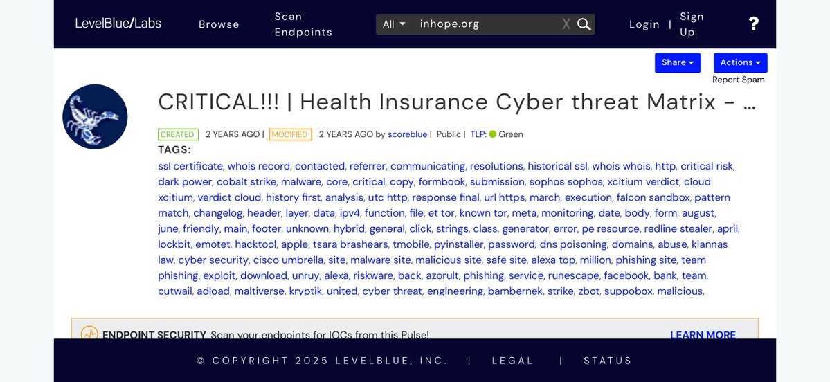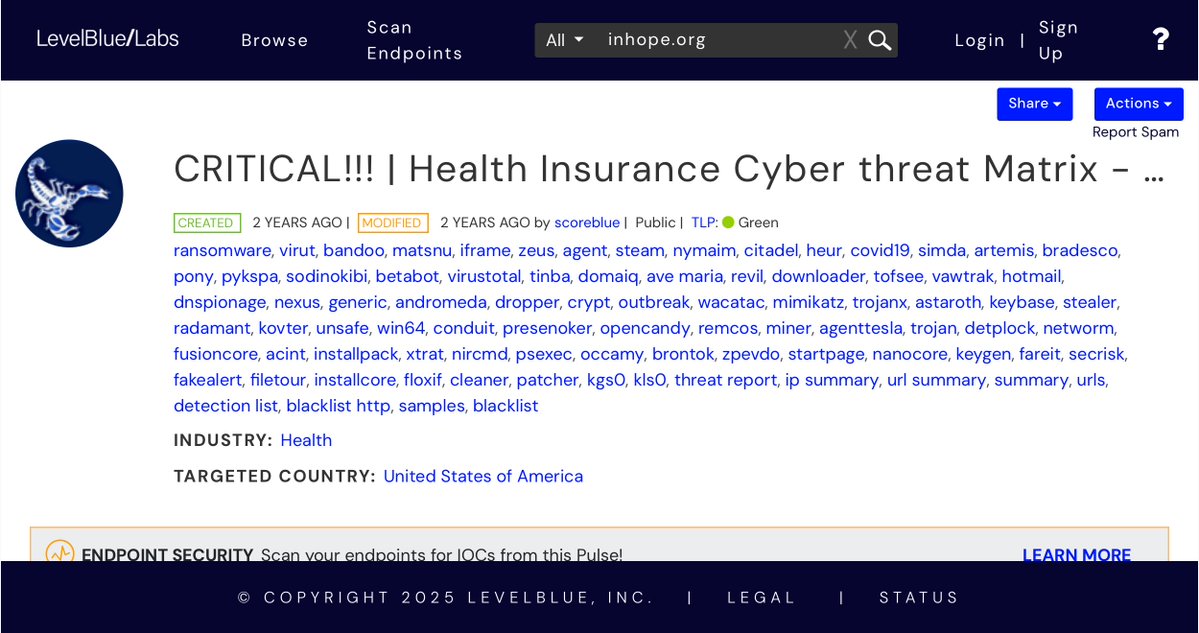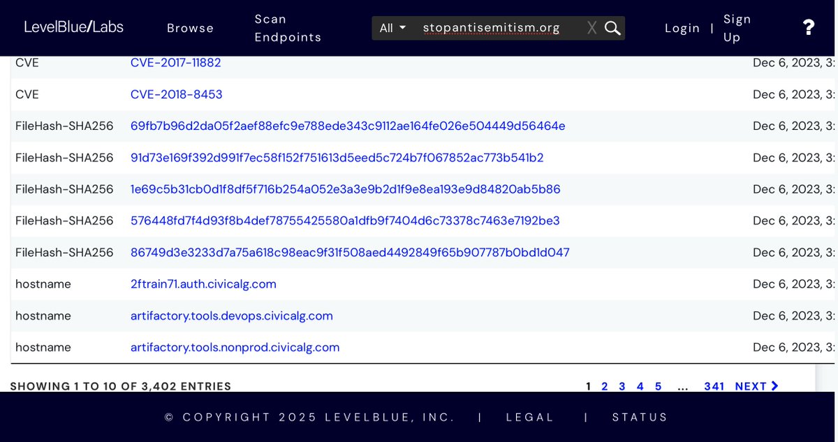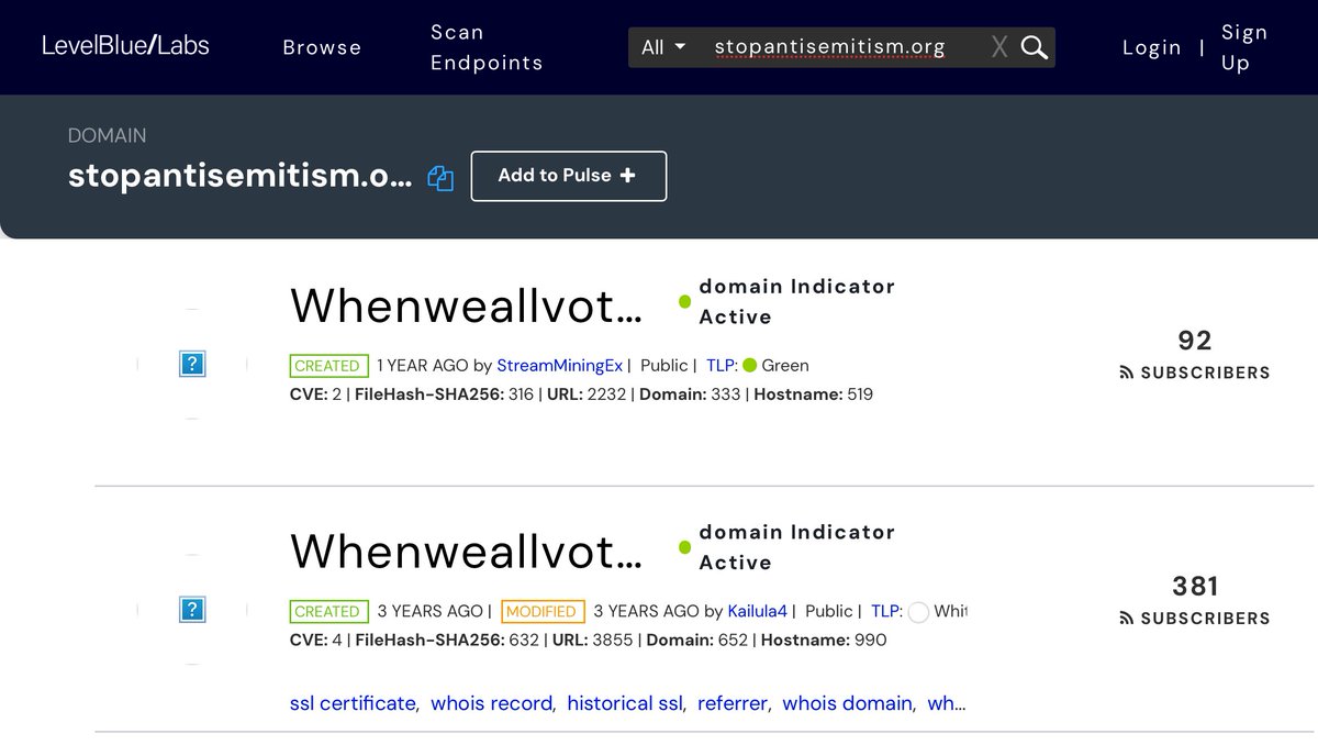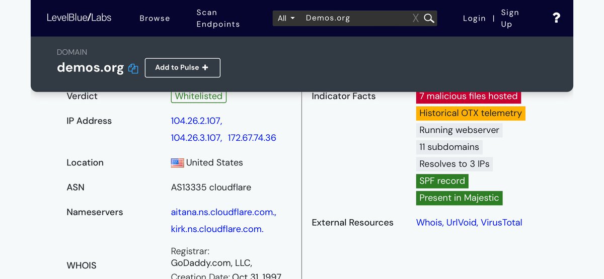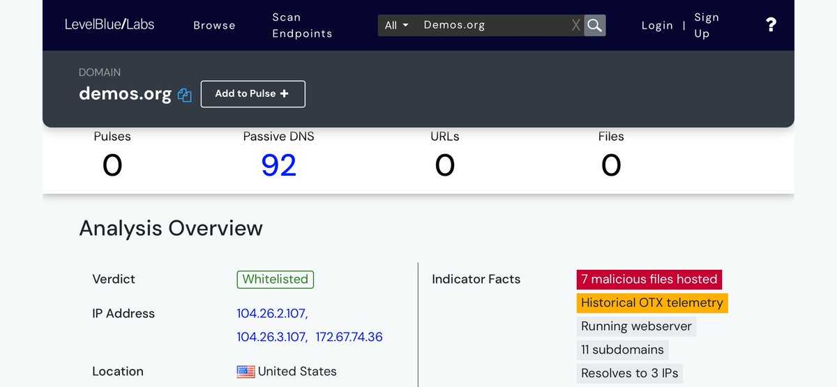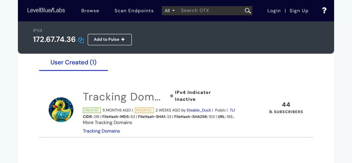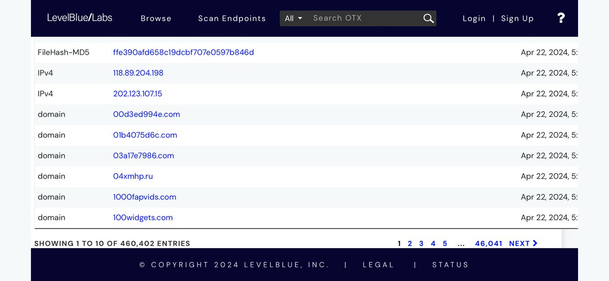 http://DEMOS.ORG ✅172.67.74.36 — 1 PULSE (Hack) detected “TRACKING DOMAINS” “MODIFIED (UPDATED) 2 WEEKS AGO” 💥“SHOWING 1-10 OF 460,402 ENTRIES” 💥April 22, 2024 *NOTE: Each of tho 460,402 entries can have a potentially UNLIMITIED number of hacks/exploits within them.