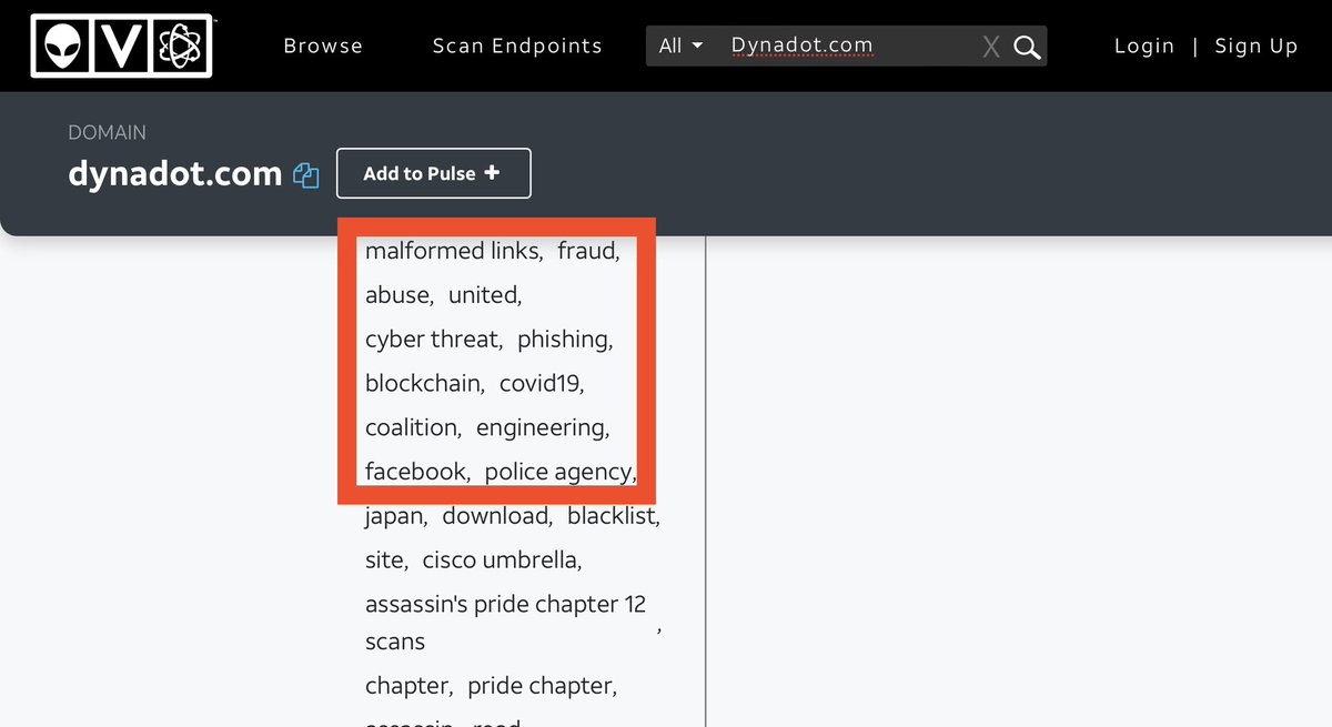 Welp, it’s official. http://DYNADOT.com has one of the WORST (if not THE WORST) AlienVault reports I’ve ever seen for a domain registrar of its kind.🤣 ✅31 PULSE RECORDS (EXPLOITS)!!!😳 ✅The UNDISPUTED CHAMPION of MOST SUSPICIOUS “RELATED TAGS” I’VE COME ACROSS!!! Feast your eyes below.🤯 (Boy, this sure looks legit AF.) HOLY. F***ING. LOLS. BATMAN!!!
