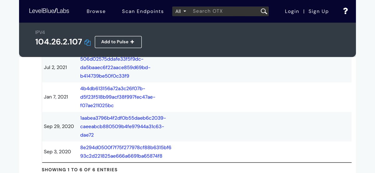 http://DEMOS.ORG *7 malicious files hosted *3 IPs resolved: 104.26.2/3.107 & 172.67.74.36 ✅104.26.2.107 — 6 malicious files (note the dates) *JAN 7, 2021 FILE: “Malicious” “suspicious write” “injection” 4b4db613156a72a3c26f07bd5f23f518b99acf38f997fec47aef07ae211025bc