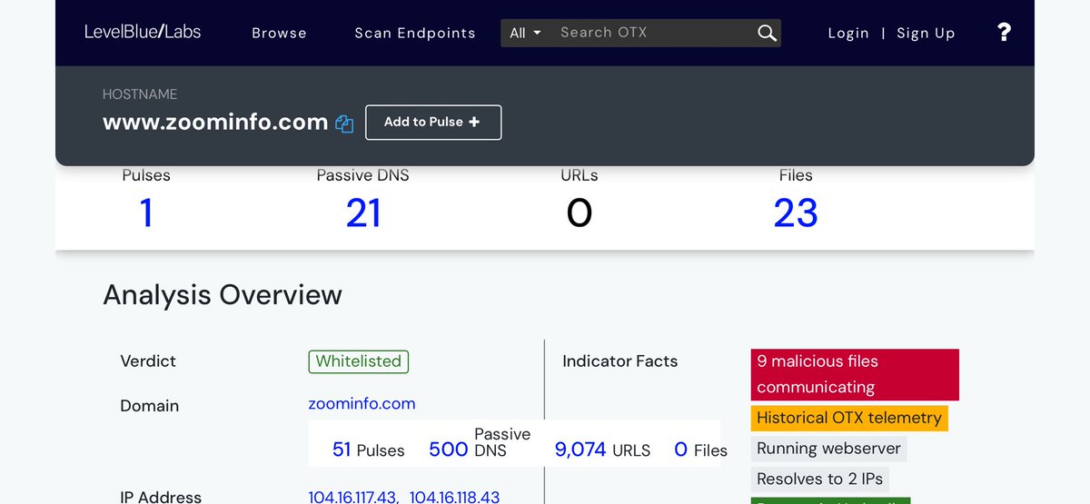 http://ZOOMINFO.COM (IDF UNIT 8200) *51 PULSES *23 MALICIOUS FILES HOSTED *9 MALICIOUS FILES *2 IP ADDRESSES: 104.16.117.43, 104.16.118.43 *AKAMAI & CLOUDFLARE (traitors🤦🏻♂️) *LET’S ENCRYPT (http://r3.i.lencr.org) -VOTING HACKS -ISRG -ACLU -DOMINION -CHABAD *ALBERTA🤦🏻♂️🤬