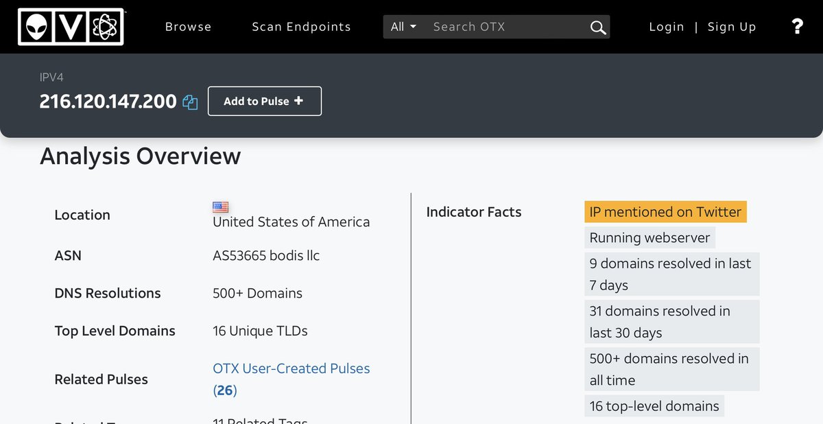 💥REMINDER: The sole IPV4 listed for http://ethereum.net (according to both AlienVault AND Twitter) is: 216.120.147.200 💥As you can see, that IP address operates within the BODIS, LLC. ASN, which is what we expect to see, per http://ethereum.net’s reported ASN. But it also has 500+ Domains resolving.🤔 💥And perhaps even more concerning, are these two tidbits: ✅“RELATED TAGS” that include “phishing”, “malicious”, “CVE-2021-22941 (MITRE vulnerability)” and what appears to be evidence of “CNAME cloaking”. (“CNAME CLOAKING” briefly explained in next tweet.) ✅A total of 1,128 (potentially) MALICIOUS FILES, which include Trojans, Malware, hashes and other security-disabling/avoiding programs!!! 🤯🤯🤯🤯🤯
