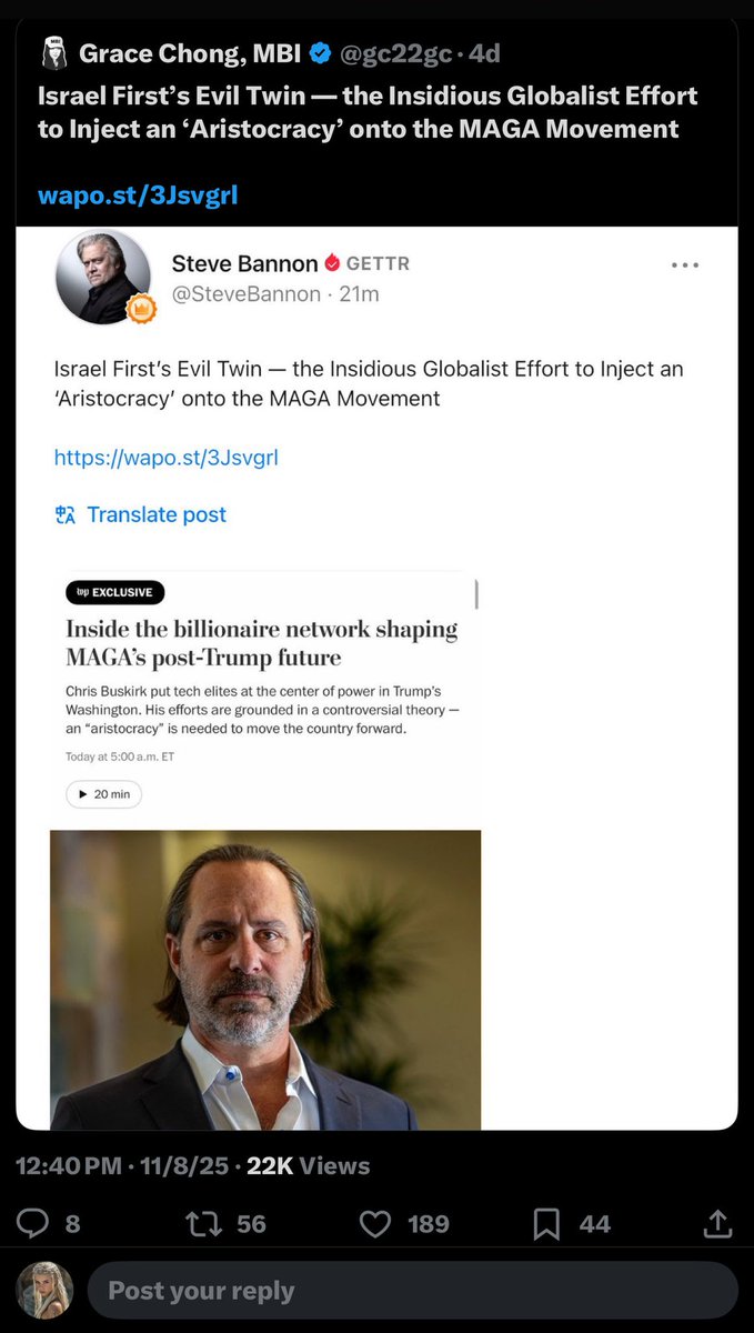 🧵9/ Who is Ashley St Clair & what is she up to? ▪️She premeditated her seduction of Elon Musk ▪️She lied about it ▪️Her meet-up with Elon was facilitated by Seth Dillon of the Babylon Bee--a suspected israeli influence operation ▪️She conceived the child just after Elon's trip to israel--after which this platform underwent significant changes & Elon signed secret contracts w/israeli intel companies ▪️She hangs out with other known israeli influence/intel operatives like Mike Benz & Arynne Wexler ▪️She's now bombarding Elon with a fusilade of exposés in the New York Post--a newspaper owned by Netanyahu's close personal friend & political donor, Rupert Murdoch. Is she really getting all this "unearned" press on her own? Why is the Post pushing this so hard? 🧐🤔