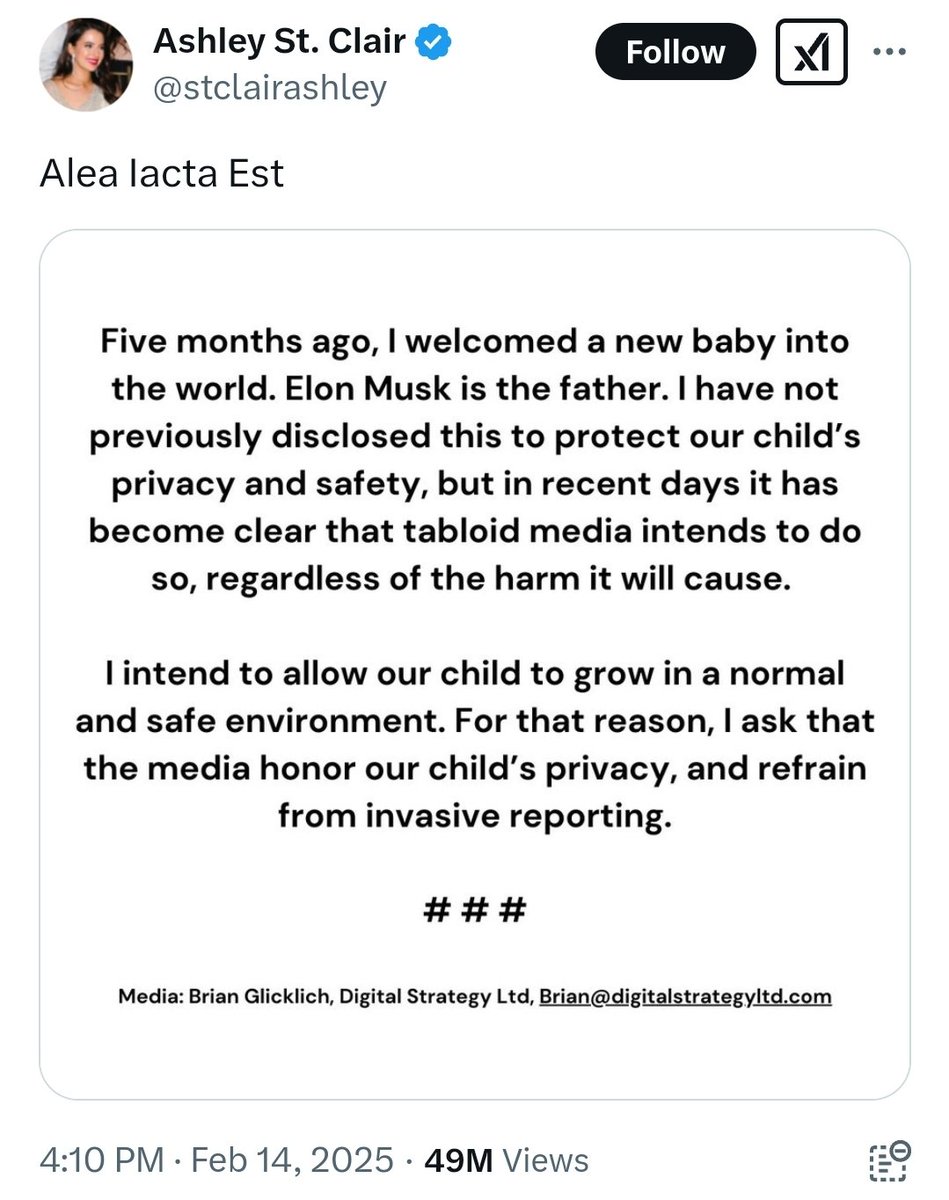 What if Cashley is lying about who the father is? I know people in New York who told me she was WASTED at a party all over different men in December of 2023. She claims she conceived with Elon in Jan 2024. I can’t wait for the results of the court ordered paternity test. 😂😂