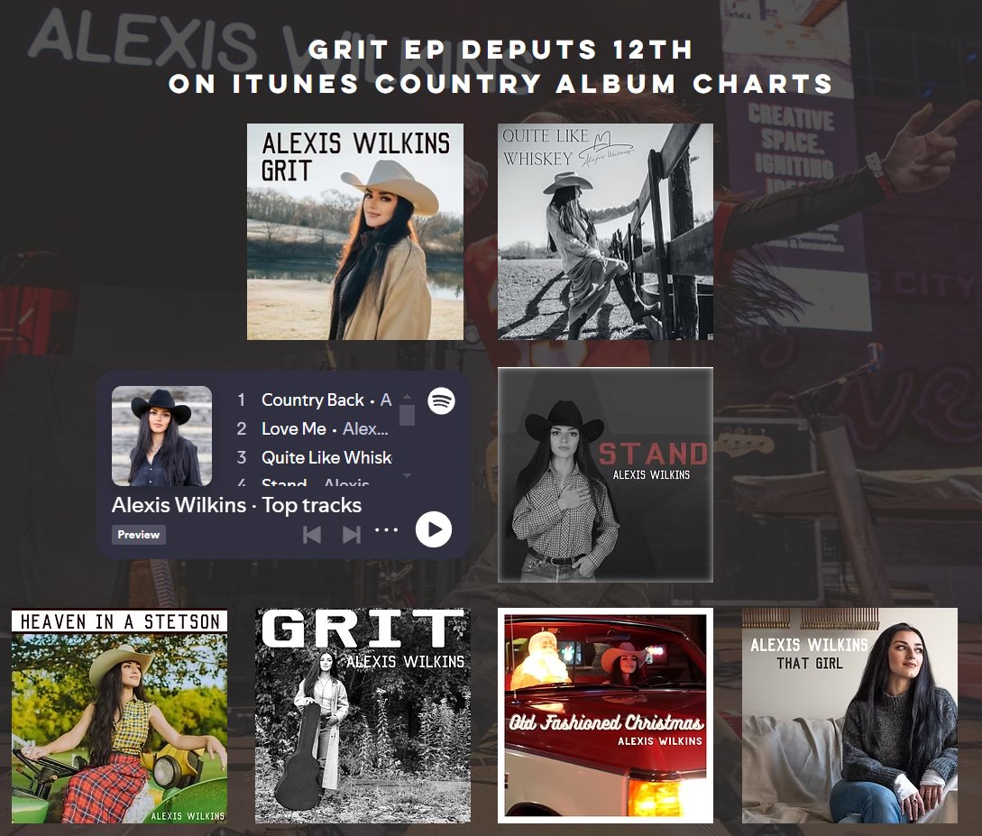 🧵10/ Country Music Career Alexis's country music career is still young, but growing. You saw a sample above with her "Old Fashioned Christmas." Her music can be found on Spotify, Apple iTunes, TikTok, Youtube, Facebook and Rumble. Her single "Grit," debuted at #12 on the iTunes Country Album Chart.