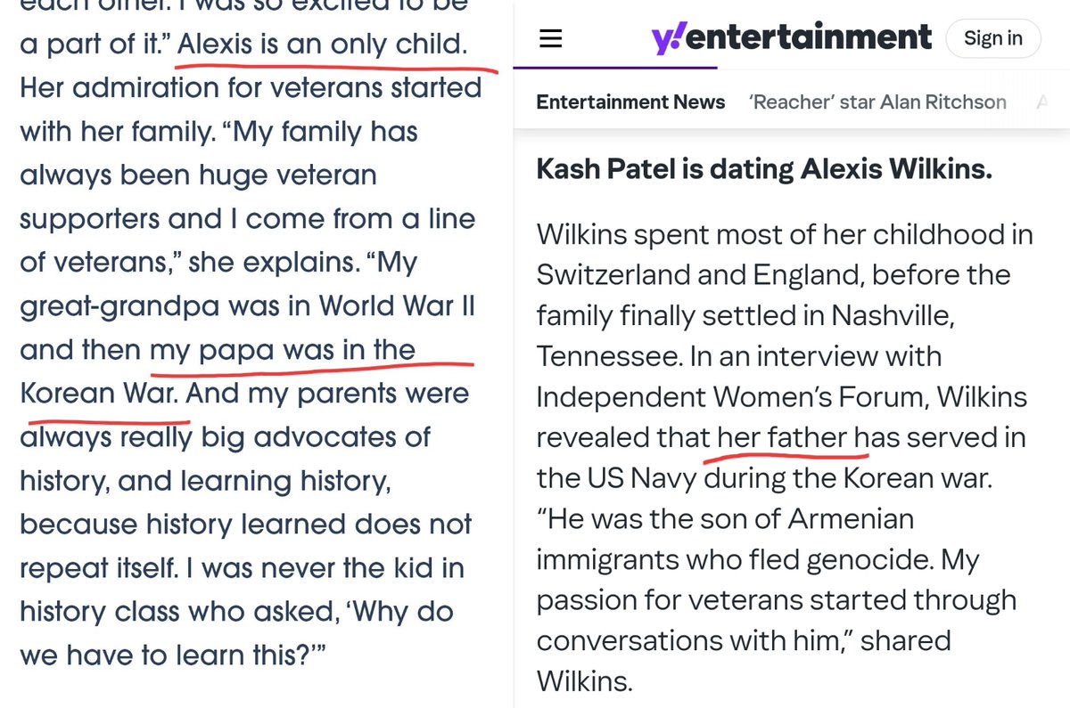 🧵3/ Alexis's Biographical Details Alexis was born in 1999 in Boston, MA, then spent most of her childhood in England & Switzerland while her father attended the University of Geneva School of Economics & Management. She attended the College du Lemon International School in Switzerland for a time (also once attended by Tucker Carlson). They eventually moved to Arkansas. Alexis graduated with a Bachelor of Business Administration from Belmont University, a private Christian school in Nashville, TN. She has stated that her father worked for Gillette and her mother worked in the pharmaceutical industry. I won't dox her father, but his presence is online. He also attended Fresno St. and Vanderbilt. Other than grad school in Switzerland, nothing about him screams "international man of mystery." Her Great-Grandfather fled the Armenian genocide & then fought in WW2. Her Grandfather, whom she affectionately calls "Papa," fought in Korea. Other than the detail about the "Navy," we don't have any other details. This heritage, she says, has given veterans and their causes a special place in her heart. BTW, some articles misread "Papa," and think she's referring to her father (see below).