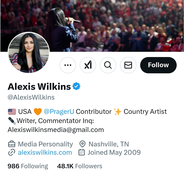 🧵1/ WHO IS ALEXIS WILKINS--Girlfriend of Kash Patel? Alexis Wilkins was a devout 24-yr old Christian when she met Kash Patel, a 42-yr old Hindu Muslim & started dating him. Now he's the FBI director. She's also the press secretarty for Abraham Hamadeh, a Syrian Muslim member of the US House of Representatives from Arizona, and a "former" member of US Military Intelligence. ▪️She's also a country music singer based out of Nashville. ▪️She works for PragerU, is tight with The Daily Wire, & has ties to TPUSA ▪️She hosts her own news & political commentary show on Rumble. Let's take a closer look at Alexis, pictured here 3 weeks after meeting Kash Patel in 2022.