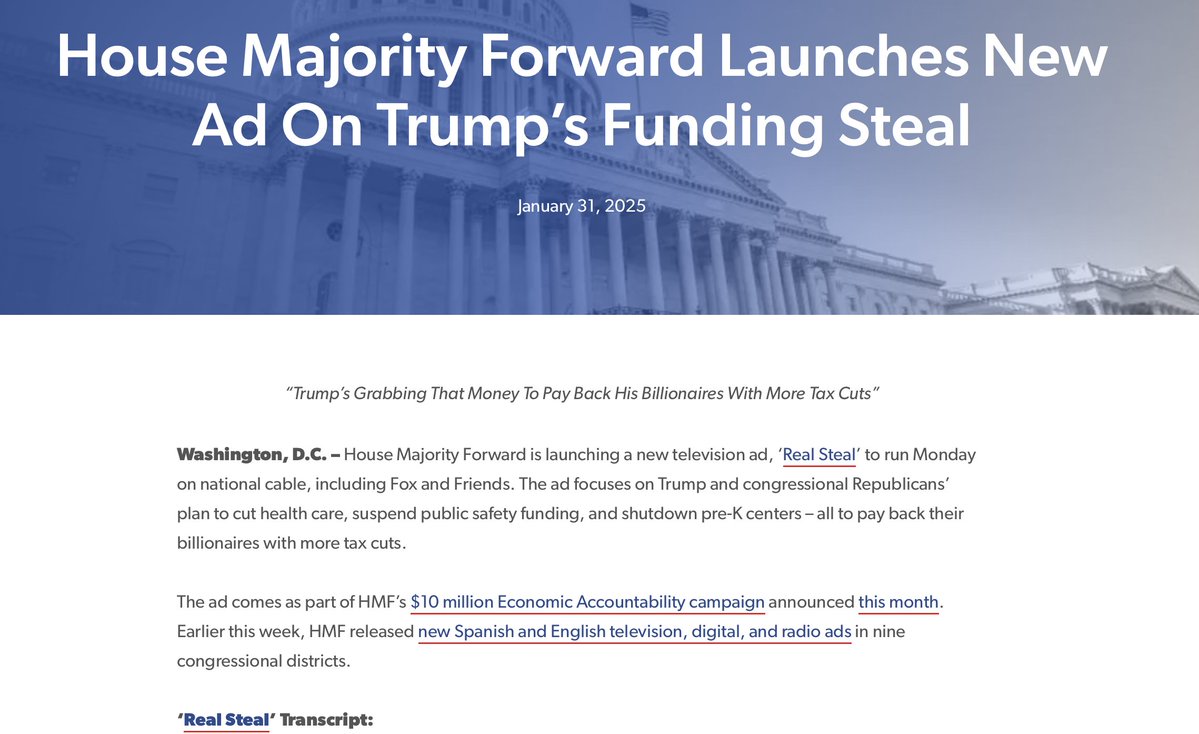 9) House Majority Forward, which has received $150,000 from Forward US, has cut several anti-Trump ads airing across national media. https://t.co/o0HKsp4NSY
