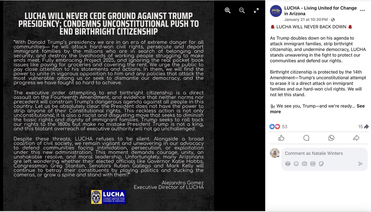10) LUCHA, another Forward US grant recipient, has pledged to “never cede ground” or “back down” against the Trump presidency and their immigration agenda. https://t.co/3Nm9J77sPD
