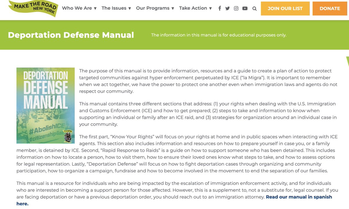 2) Forward US has donated to Make The Road States, which published a “Deportation Defense Manual,” instructing illegal aliens how to avoid ICE raids. This includes instructing them to lie to ICE agents and law enforcement. The group is also suing Trump over mass deportations. https://t.co/7bXk3HSNhR