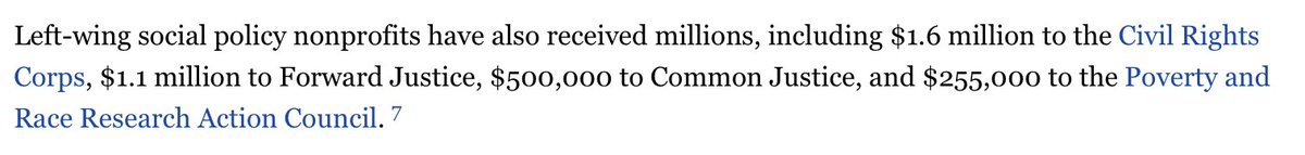 4) CZI donated at least $500,000 to Common Justice, a far-left group pledging to “resist POTUS’s efforts to criminalize immigration.” Common Justice is also part of Protect Democracy, the leading coalition of left-wing groups suing Trump. https://t.co/vc6zhgtafA