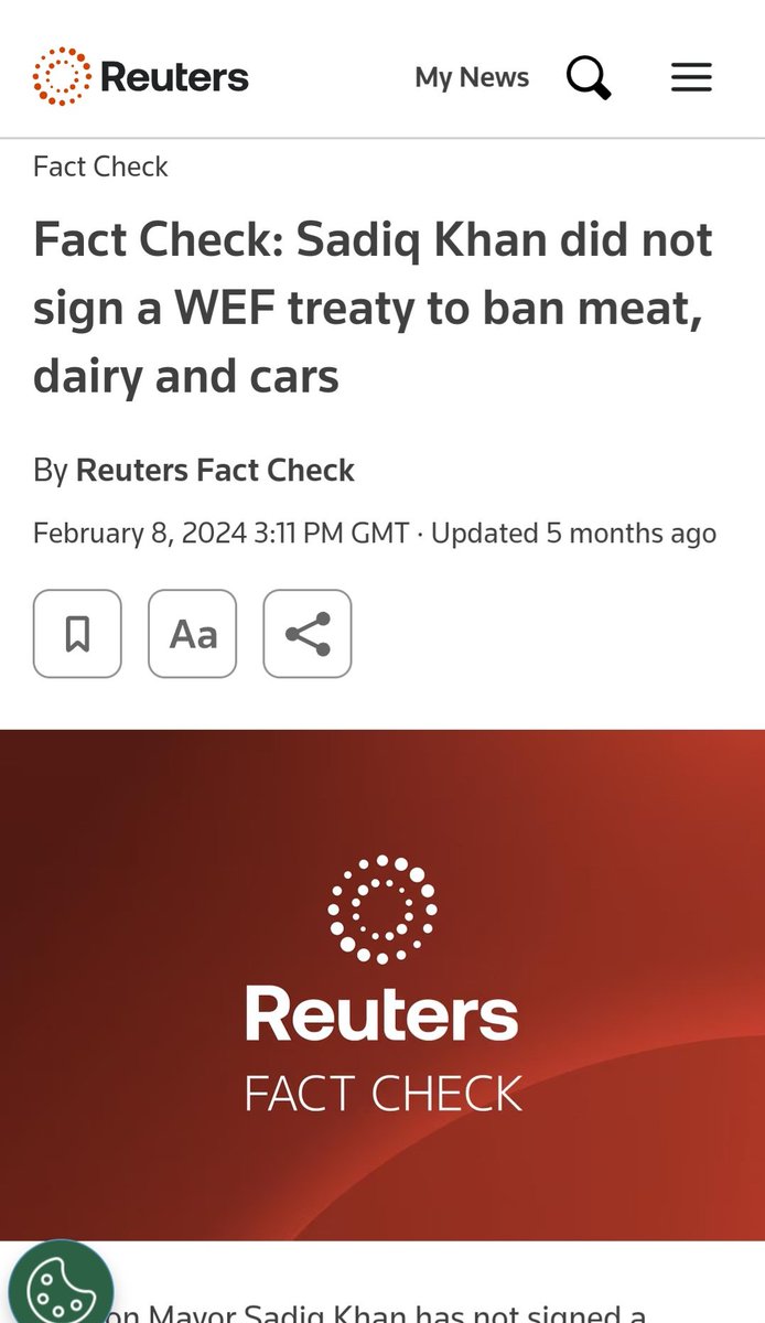 Cont.. GLOBALIST: FEAR TO CREATE CHAOS. Using the Green Agenda as a fear method to bring about conformity. "Climate change is happening now," Skea declared. "You can see it on your TV screens, you can see even looking out the window, deciding what clothes you need to wear when you go out." 15 MINUTE CITIES: LONDON NOW. London Mayor Sadiq Khan’s Ulez removal of cars & vans owned by the less affluent who can't keep up with daily costs that mountain up from ULEZ fee's, imposed as you pass by the thousands of 5G cameras.. This commute cost is just one example of the attacks planned against town dwellers living in modern industrial societies. Khan is the current chairman of C40, a global network of city mayors backed by numerous hard-Left billionaire foundations. But.. 15 minute cities are NOT just about reduced traffic.. They're about controlling ALL aspects of your life within the zones. That includes what you can eat would you believe? A Headline Report published by the C40 group in 2019 re-emphasised a "progressive" target for 2030. Green Agenda targets include: 1. A target was set of a daily per person allowance of 44g of meat.. That's enough for two small meatballs ! A daily limit of 2,500 calories, less than the ration in the Second World War, plus.. 2. One short haul flight every three years. 3. Eight new clothing items a year. 4. Private cars available for only one in five people. Of course, there's the usual 'Fact-checking' policy coming from the very MSM outlets that many rightly see as a source of misinformation, by not only what they tell us, but by leaving out information that skews our interpretation of the stories. This is all fair & legal.. by leaving out info, they're technically NOT lying or wrong.. they're just using subversive tactics to keep us all in the dark. So, in balance, I've added a pic (no.4) & a link below to a Reuters article that states the less meat & no cars is... "all just a misunderstanding!" Make up your own minds on all that. Also worth noting.. Keirs Starmer, the new Labour leader of the UK, is a member of the globalist Trilateral Commission.. Which is.. An agenda of the WEF, the World Economic Forum which now owns both London Mayor Kahn & UK Prime Minister, Starmer. So.. The UK is now theoretically a.. ONE-PARTY STATE.. A WEF directorship. And that's the way all Countries are headed. As Klaus Schwab of the WEF said.. "..we have infiltrated the Cabinets, our people are in positions of power.." So, the money invested, the people in positions of power, the misinformation strategies to keep you misinformed, the psychological fear factor being played out on all of us, the objective is to create chaos, so we'll scream for calming measures & Law & Order re-instated, & we'll be happy in our little 15 minute boroughs with everything on hand, but just everything THEY will allow only.. A social construct model built on the Chinafication¹ as brought up by Hermann @hermannkelly at the top of this long thread.. So, you're STILL not feeling threatened into a corner? STILL don't see any of this affecting you personally? Well.. the next part is all about you who think like that.. The financial hits on the way... Cont.. London 15 min city.. food & travel targets, from the official C40 Group. https://www.c40.org/news/a-sustainable-diet-by-2030-is-key-to-solving-the-climate-emergency/ Reuters dismissing the 15 min city Agenda. https://www.c40.org/news/a-sustainable-diet-by-2030-is-key-to-solving-the-climate-emergency/