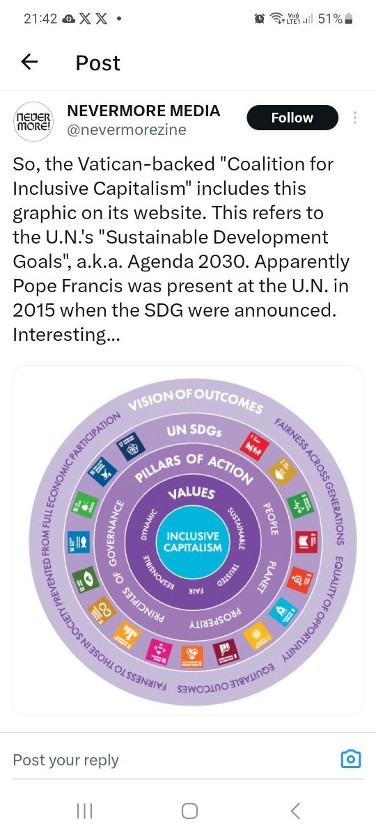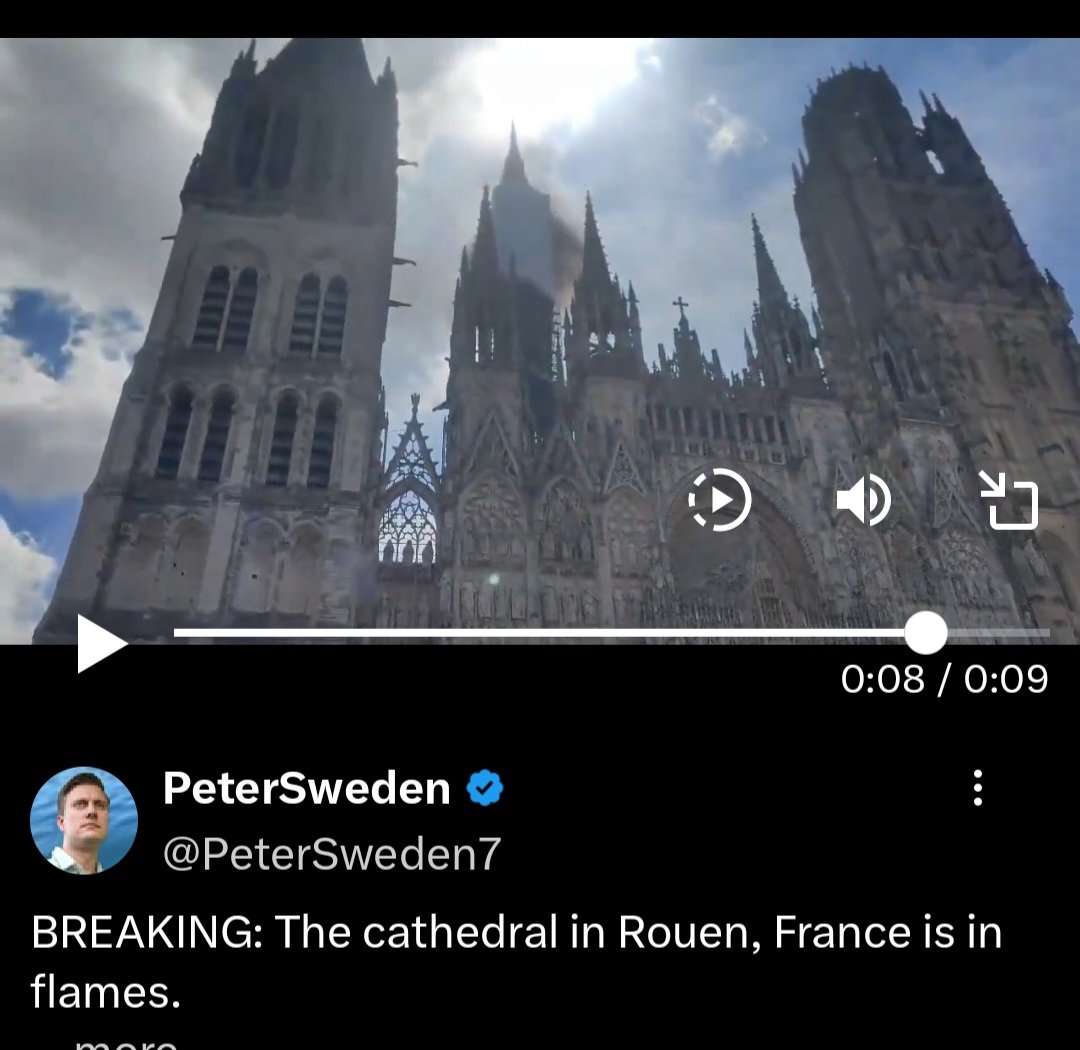 RELIGION & GLOBLISM Prt 1. The Religious War that is going on right now, without many noticing, is intensifying. Islam vrs Christianity. Here we go, a repeat of the olde Crusades days, yet again. The relentless onslaught throughout history by Islam upon the World is their defining fundamentalist vision of a one World of Islam.. no other Religion. Led by Imams, the fanatics of the faith have taken matters into their own hands. Killing, burning, raping & pillaging all across the World. We may as well be back in the 1100's AD. The Pope as the Head of the Christian Church, is doing more harm than good. Hungarian, Victor Orban is doing more for Christians than the Pope. The Head of the Christian Church is on the side of the New World Order, & all its depopulation plans. As Hungary assumed the rotating presidency of the European Union on July 1 2024, self-styled "Christian illiberal democracy" leader Viktor Orbán has announced a new vision for Europe. "What Europeans want is three things: Peace, Order, & Development," "And what they are getting from the elite in Brussels today is WAR, migration, & stagnation," Orbán said on June 30th, 2024. Some of the Popes own Bishops have called for his removal from the Holy Throne. The most vocal being Archbishop Carlo Maria Viganò who has "..called for the creation of an Anti-Globalist Alliance under the Cross of Jesus Christ, the only King & Saviour, to fight against the establishment of the New World Order." The actor & family man, Mel Gibson (like him or hate him), has written an open letter to Archbishop Carlo Maria Viganò. Mel Gibson has sent a letter of support to Archbishop Carlo Maria Viganò after Jesuit Pope Francis excommunicated him last week. (First week of July 2024). The Archbishop did not attend his Vatican ‘schism’ trial &, in a powerful statement & indictment of the Vatican & Pope Francis, argued that he is not in schism with the Catholic Church. Instead, he accused the Pope of ‘heresy & schism’ & requests that HE be "removed from the throne." The now, 'out of title' Archbishop also claims that the current Pope's goal is to dismantle the Church & replace it with an organisation based on Masonic principles. Look at Pic 4 below. You will see that the Vatican does indeed support The 2030 Agenda, with their 'Coalition for Inclusive Capitalism' policy & its colourful graphic showing all the integrated links between The Church & the Globalists agenda. The Muslim Islamists are loving this, & are openly talking in sermons about taking full advantage of the situation. Below, in pic 1, you see a Muslim Imam leading prayer, saying that "..28% of Christians have lost faith, many are Athiests or Agnostic now.." Islamics see this as an opportunity to convert more to Islam, & he goes on to say that Muslims need not build more Mosques but merely take over Christians churches, buying them or gaining them by other means. (Pics & link in comments below) We see now that many Christian Cathedrals & Churches are being set on fire across Europe. Yesterday, 11th July 2024, the huge cathedral in Rouen, France, was up in flames. It's known for being one of the most spectacular gothic buildings in France. This is the latest fire in a long series of deliberate arson attacks upon Christians places of worship that have increased since the migrant influx. Back in 2019, a fire at Notre-Dame in Paris also started during 'renovation works' & destroyed the cathedral's roof, the spire, & almost toppled the main bell towers. Five years on, restoration of the Paris landmark continues, & its reopening to worshippers is scheduled for December 2024. Michelle Obahma happened to be sipping wine while on a cruise on the Seine River at the very time of the fire. 'She' (??) watched as the famous Notre-Dame Cathedral went up in flames, pictured laughing by MSM as the Cathedrals Spire fell down. Not a good look for an ex-First 'Lady' of the USA. (Pic in comments)