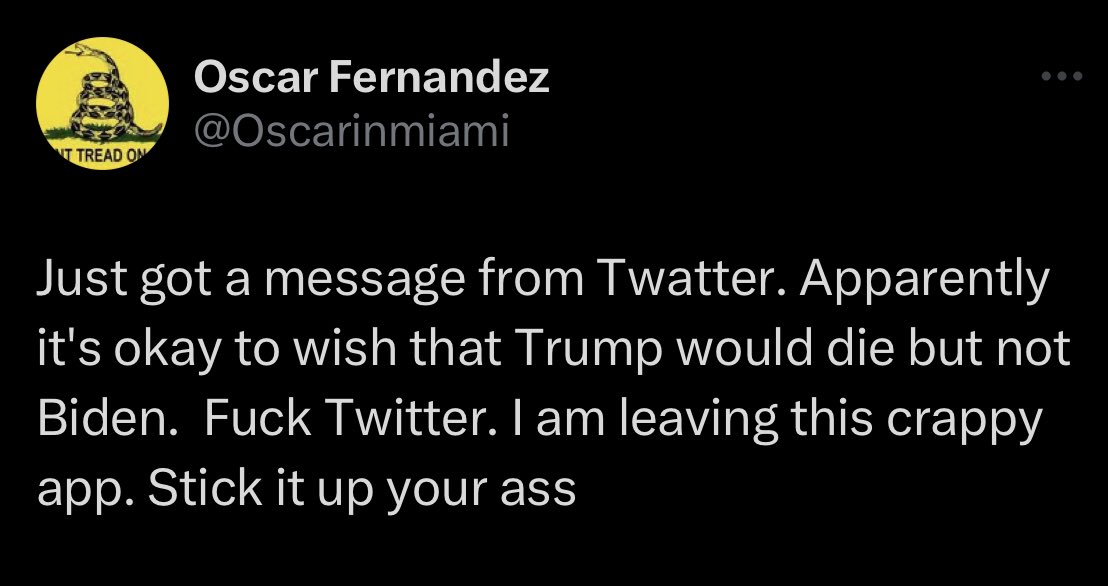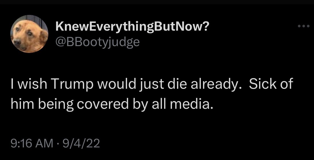 TWEETERS WISHING TRUMP WAS DEAD (THREAD).... @elonmusk 👀 Twitter has some 'splainin to do. This tweet inspired the thread, so let's start with Oscar first: #Unredacted #ImWithOscar #BuydensRemorse🎻