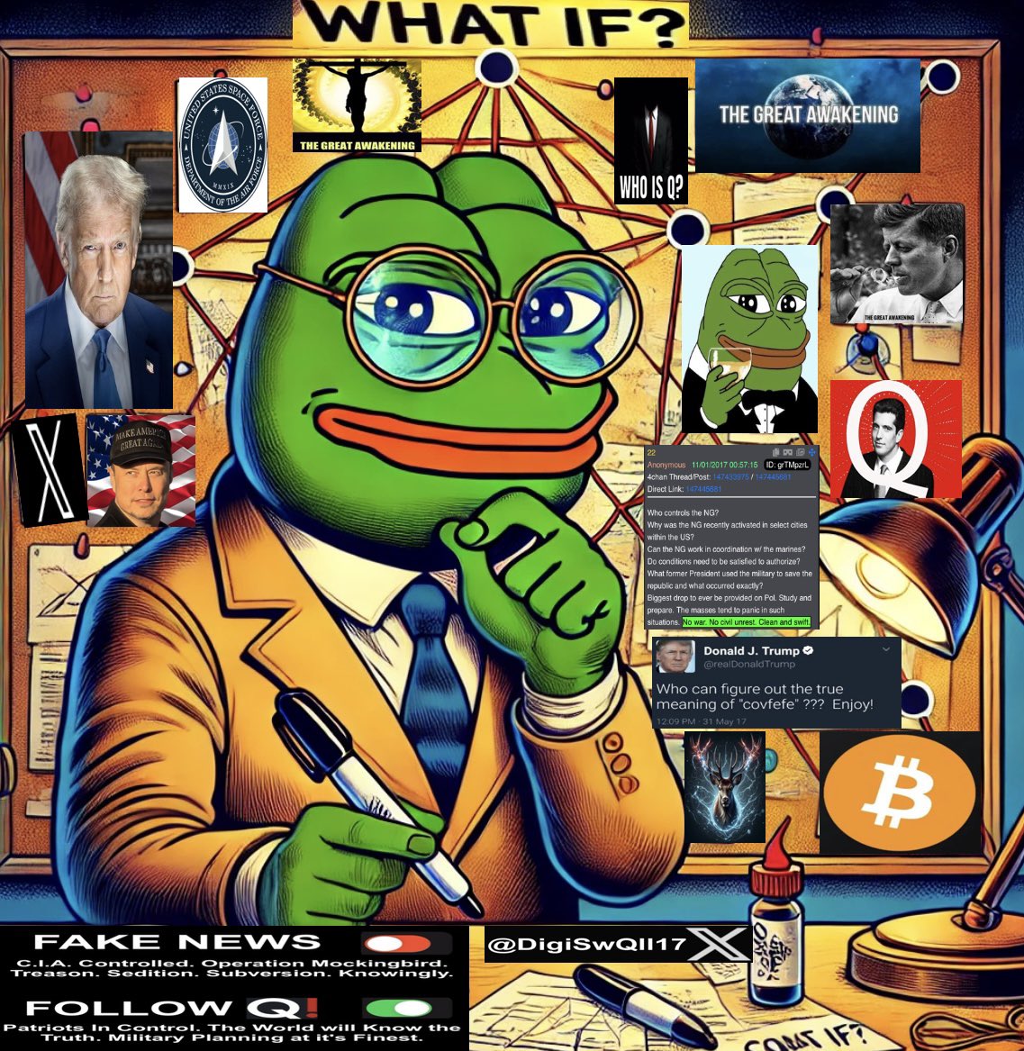 Enter Pepe: 🧵 26 of 50 What if Pepe the Frog isn’t just a meme but a symbol of the Great Awakening? What if Pepe’s rise represents the triumph of free speech, humor, and truth? What if [THEY] fear Pepe because it shows how memes bypass [THEIR] propaganda and systems of control? What if that’s why Q told us “Memes are important”? 🐸