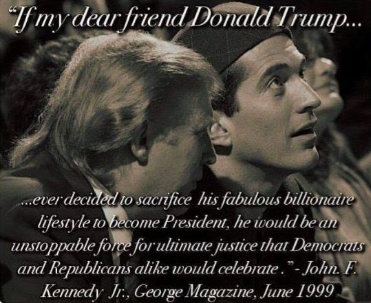 Enter JFK Jr.: 🧵 15 of 50 What if JFK Jr.’s friendship with Trump was by design? What if JFK Jr.’s death wasn’t a tragedy but a strategy and integral part to “The Plan”? What if he’s ready to finish what his father started? What if this was the moment Patriots began working behind the scenes? What if his death elevated the silent war to a whole new level? What if JFK Jr. isn’t gone but waiting? What if Q’s question—“At what stage do you play the TRUMP card?”—not only reveals the timing, but holds a deeper meaning as the key to this moment in time?