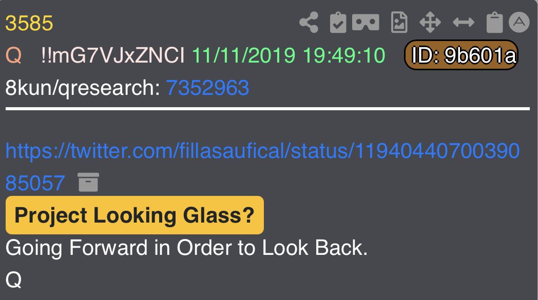 Project Looking Glass: 🧵 18 of 50 What if Patriots have access to tools like Project Looking Glass? What if Q’s phrase “Future proves past” is more literal than we think? What if Trump’s team being ten steps ahead isn’t luck but a strategy? What if every series of “Mathematically impossible coincidences” and Deltas are calculated moves in this timeline? What if time itself could be harnessed as a weapon? 🧢 @qaggnews